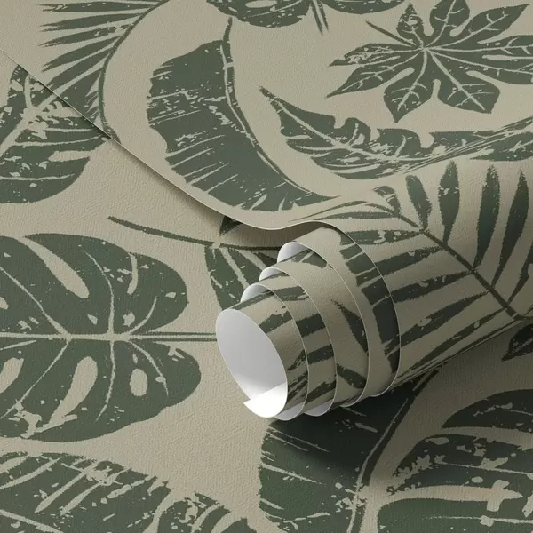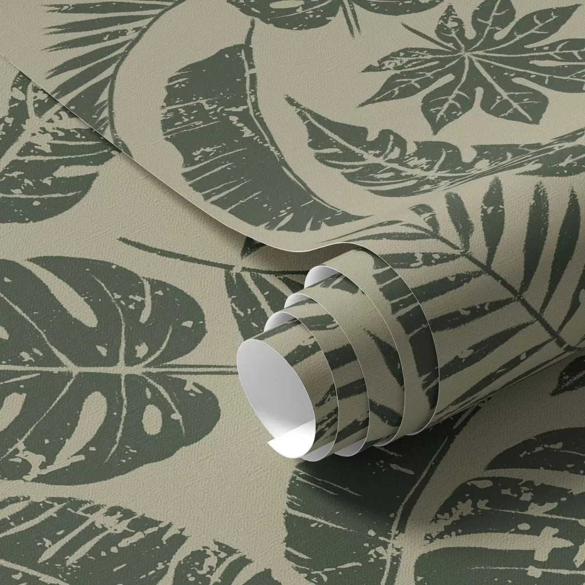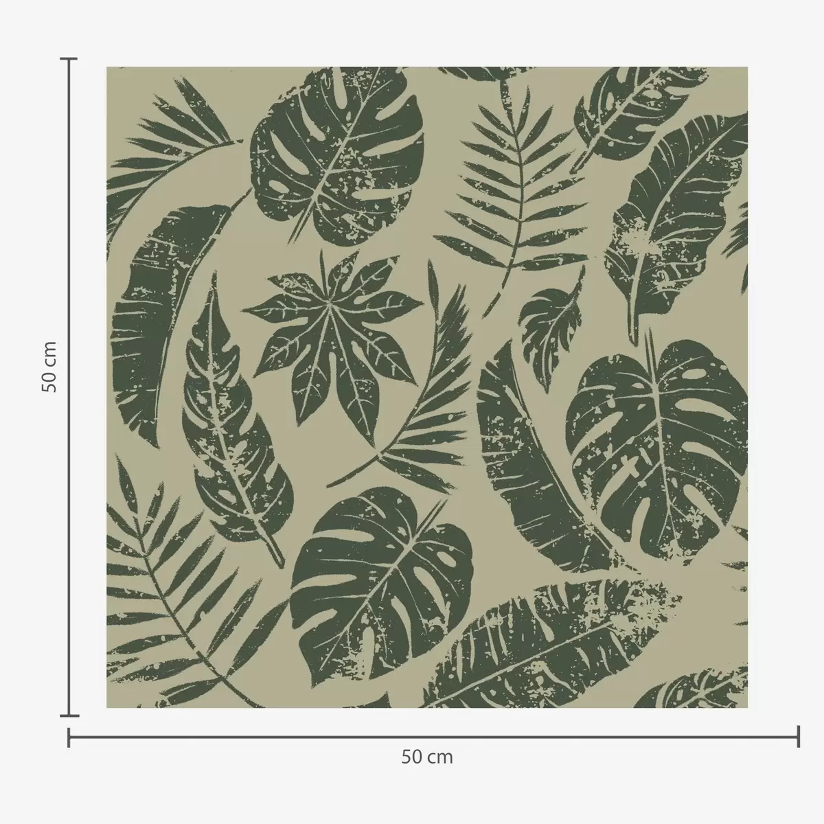 Тапет Тропически листа в стил линогравюра, зелено върху жълто Nr. a00274