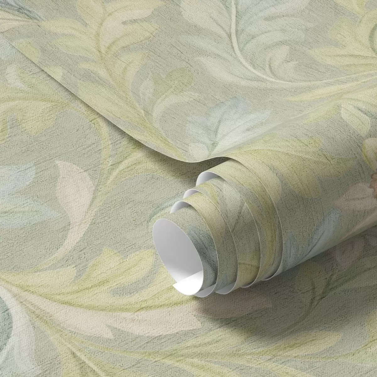 Тапет Реколта листа на зелен фон, пастелни цветове Nr. a00277