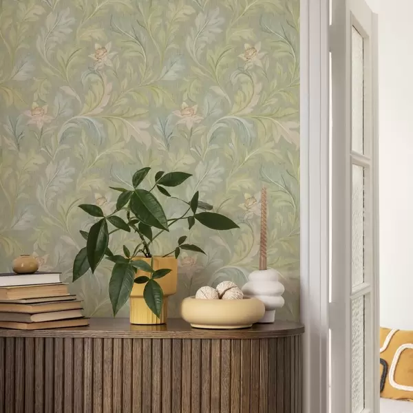 Тапет Реколта листа на зелен фон, пастелни цветове Nr. a00277