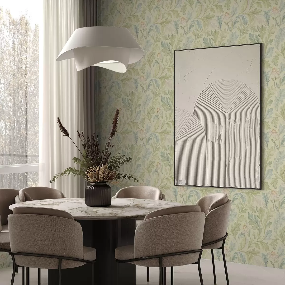 Тапет Реколта листа на жълтеникав фон, меки цветове Nr. a00277v1
