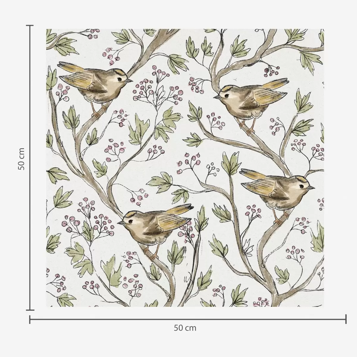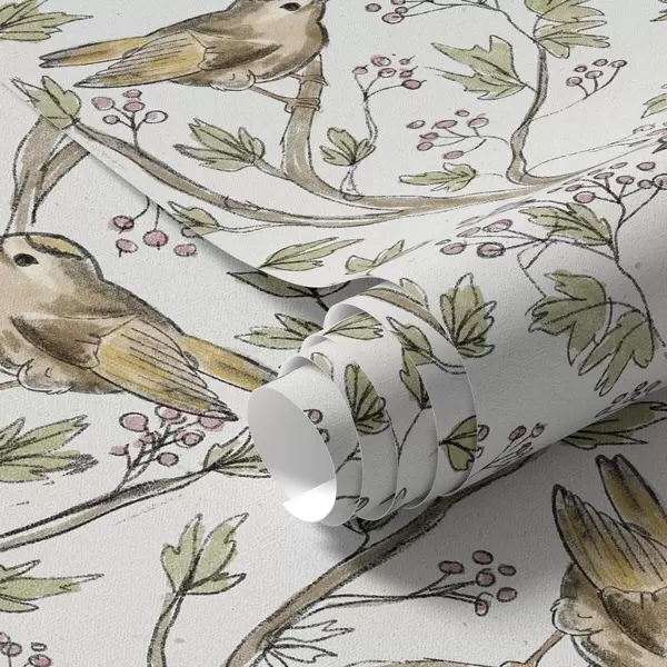 Тапет Птици върху клони с листа и плодове на бял фон Nr. a00283