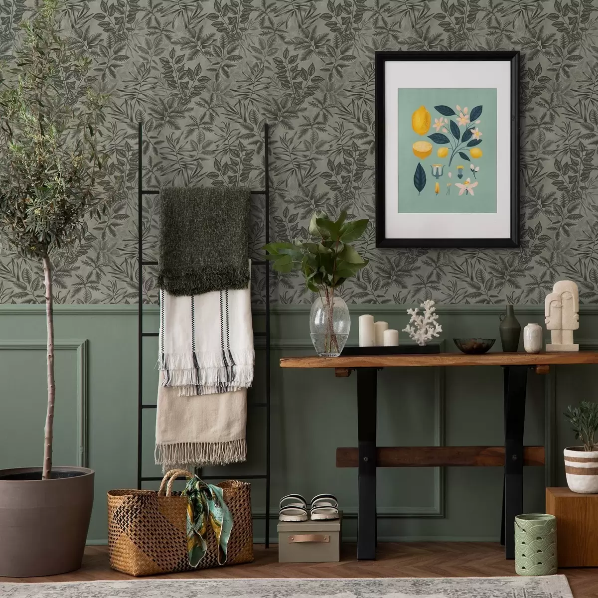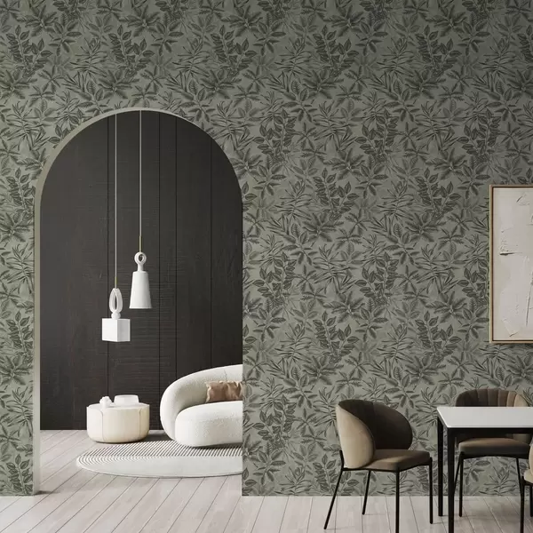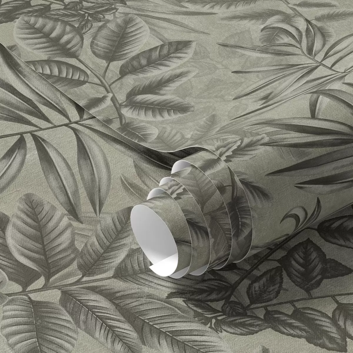 Тапет Сиви тропически листа с различни форми на винтидж фон Nr. a00297