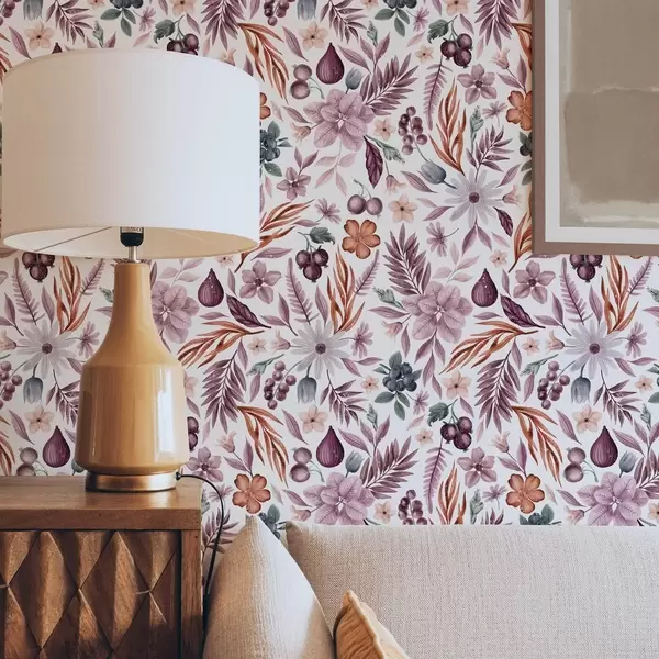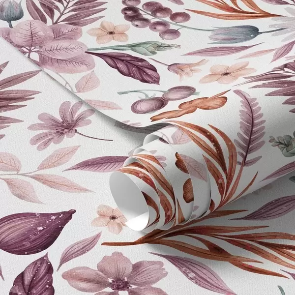 Тапет Ярки плодове, цветя и листа в акварелен стил Nr. a00298