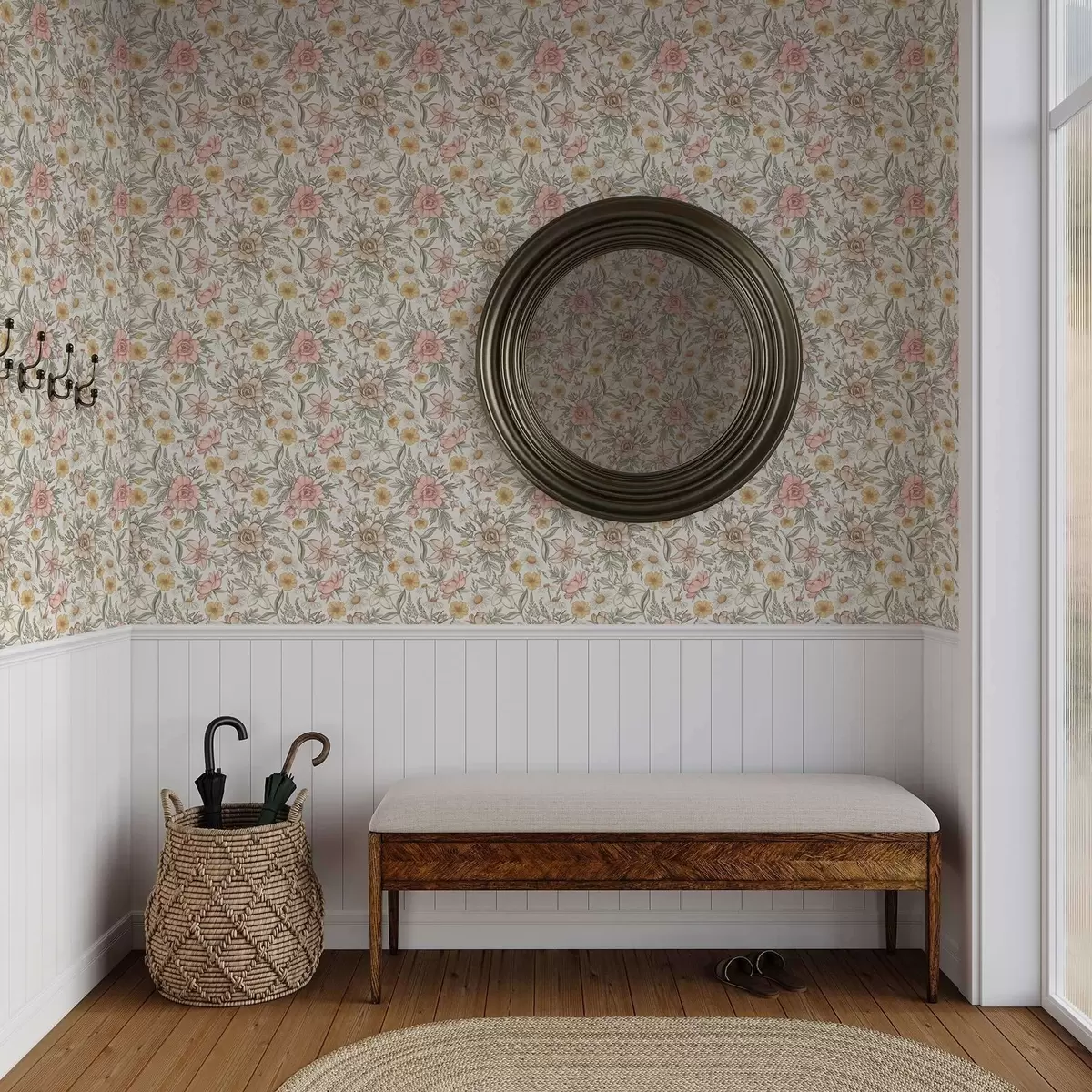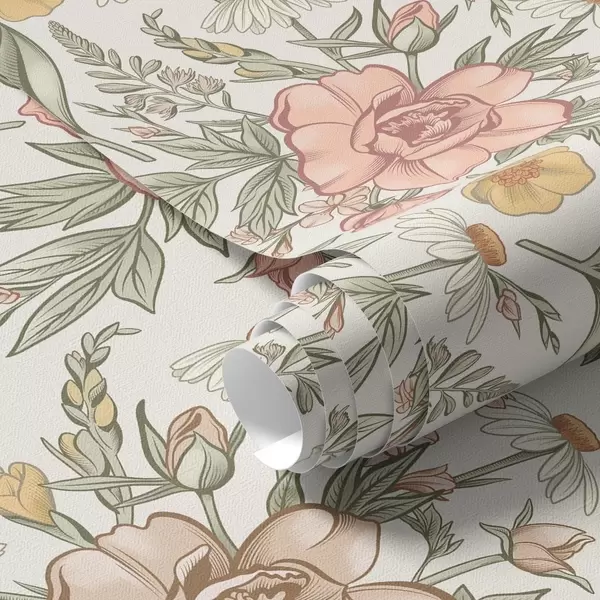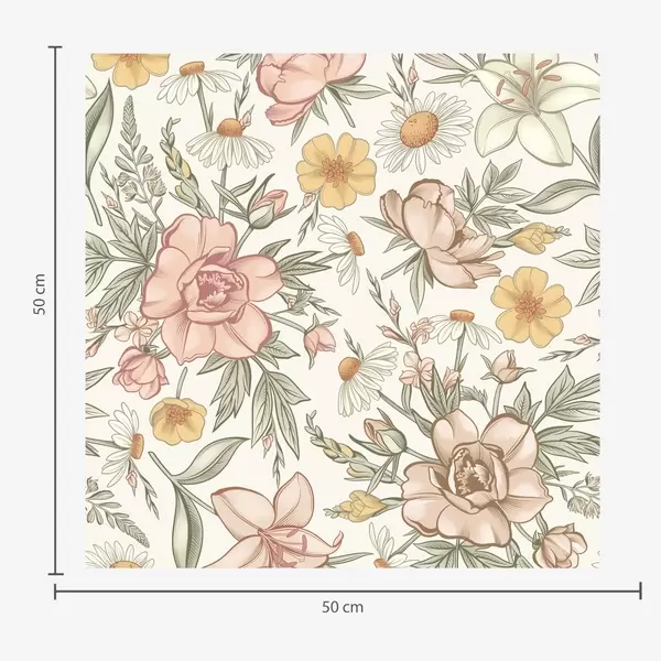 Тапет Маргаритки, божури, лилии и листа в нежни цветове Nr. a00299
