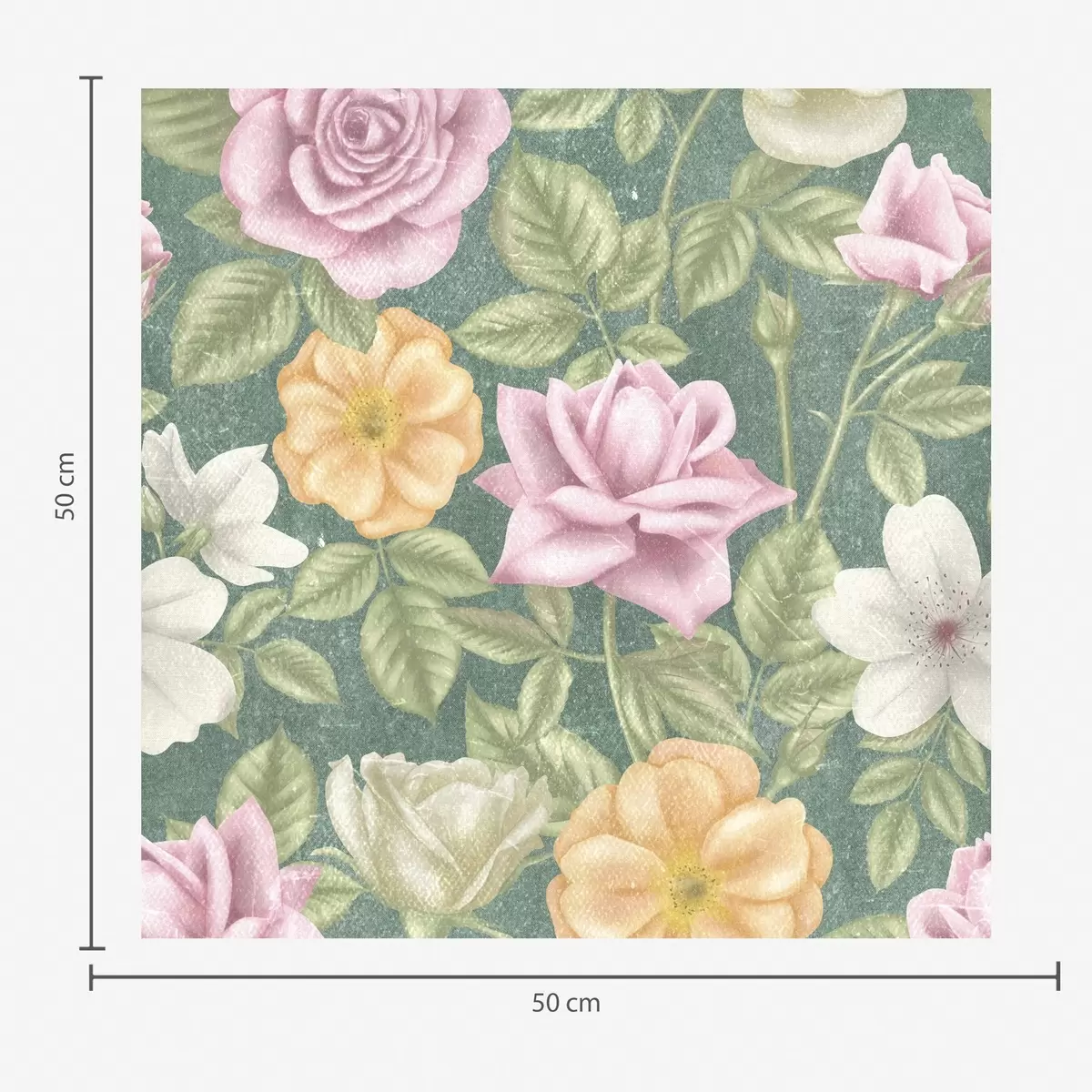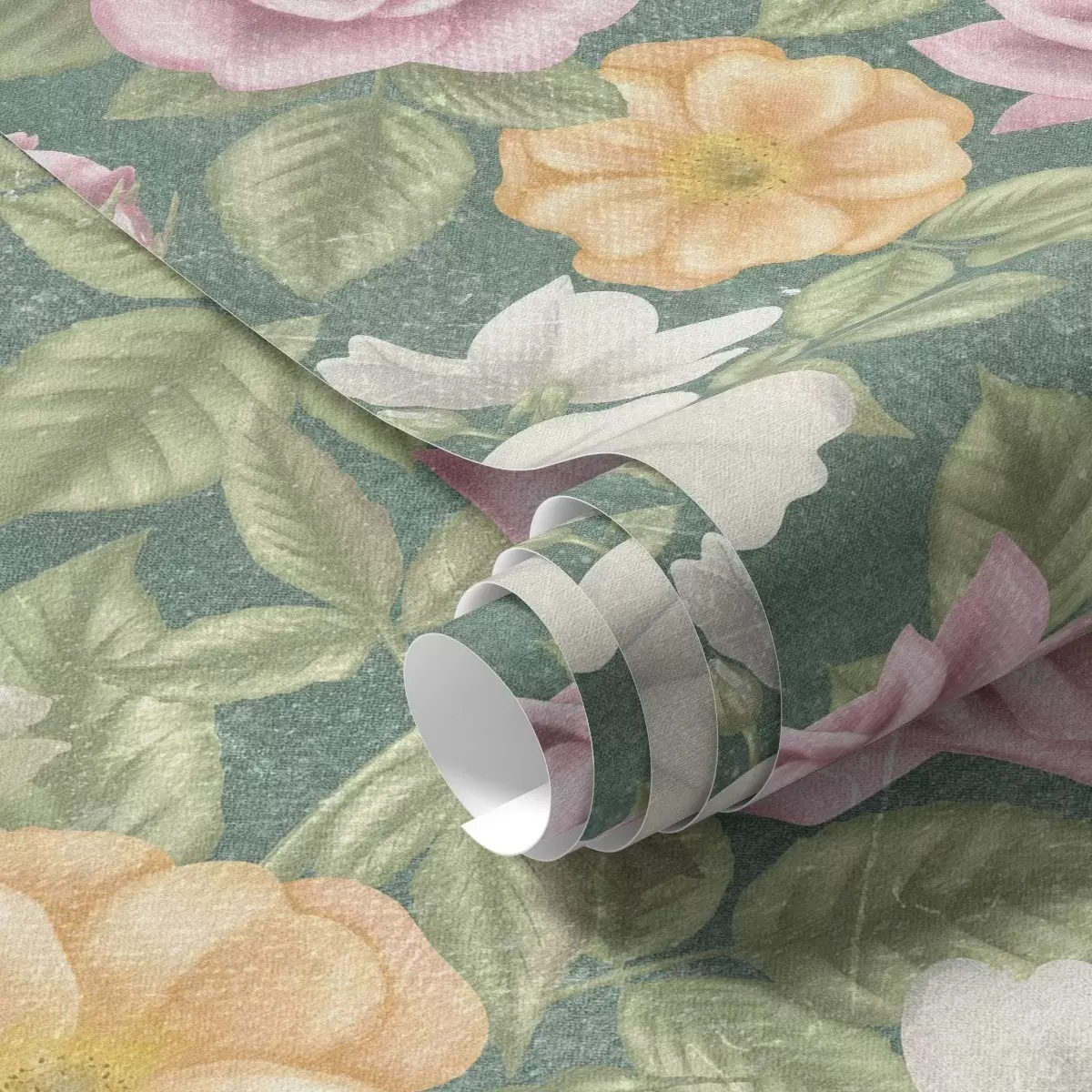 Тапет Розово-кремави и жълти рози на зелен фон Nr. a00300