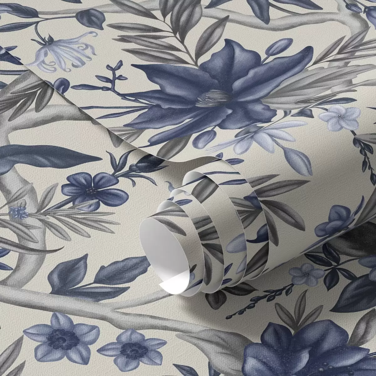 Тапет Сини и сиви цветя на светъл фон Nr. a00304