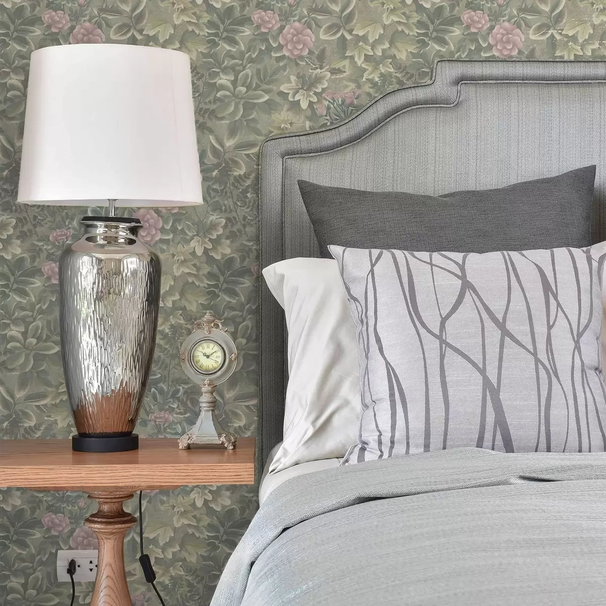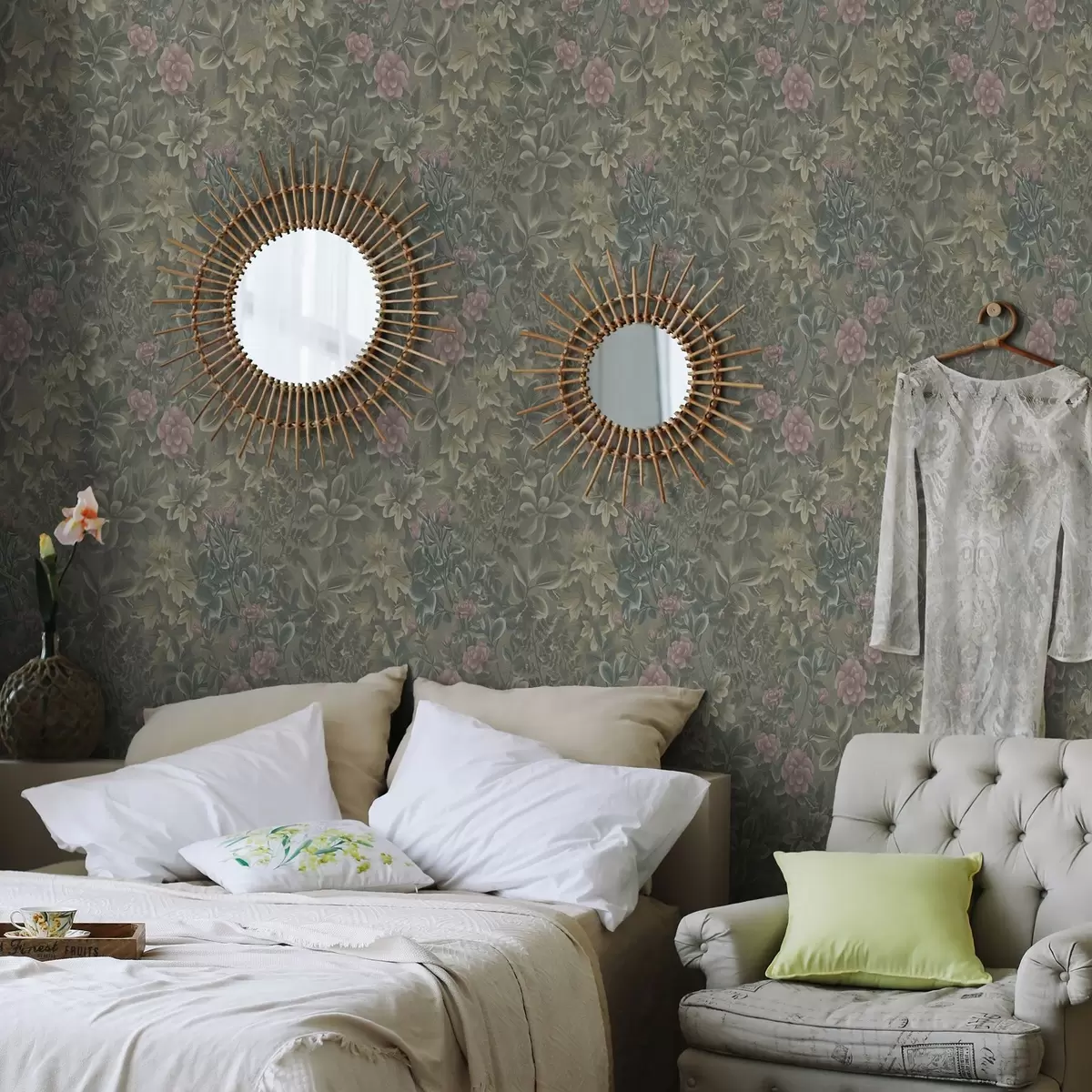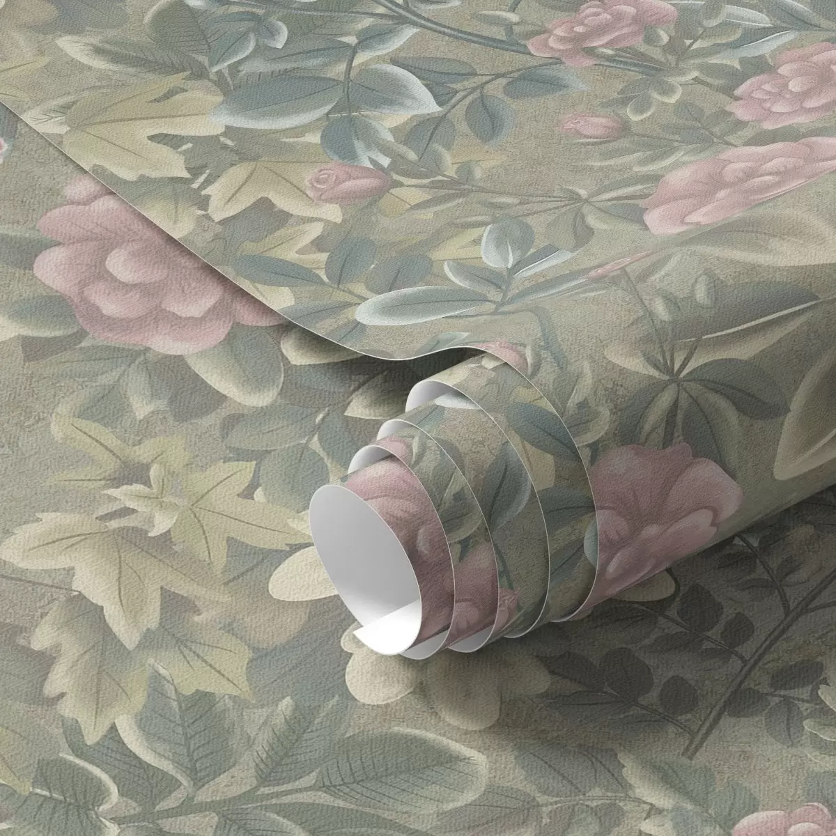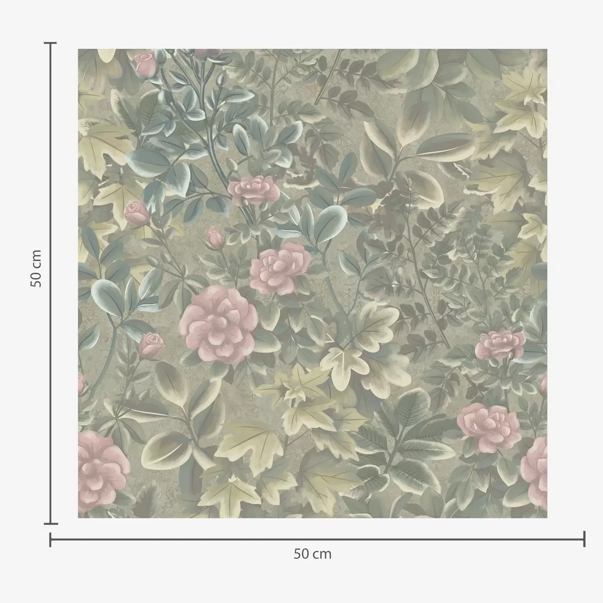 Тапет Розови цветя и листа на пастелно зелен фон Nr. a00306