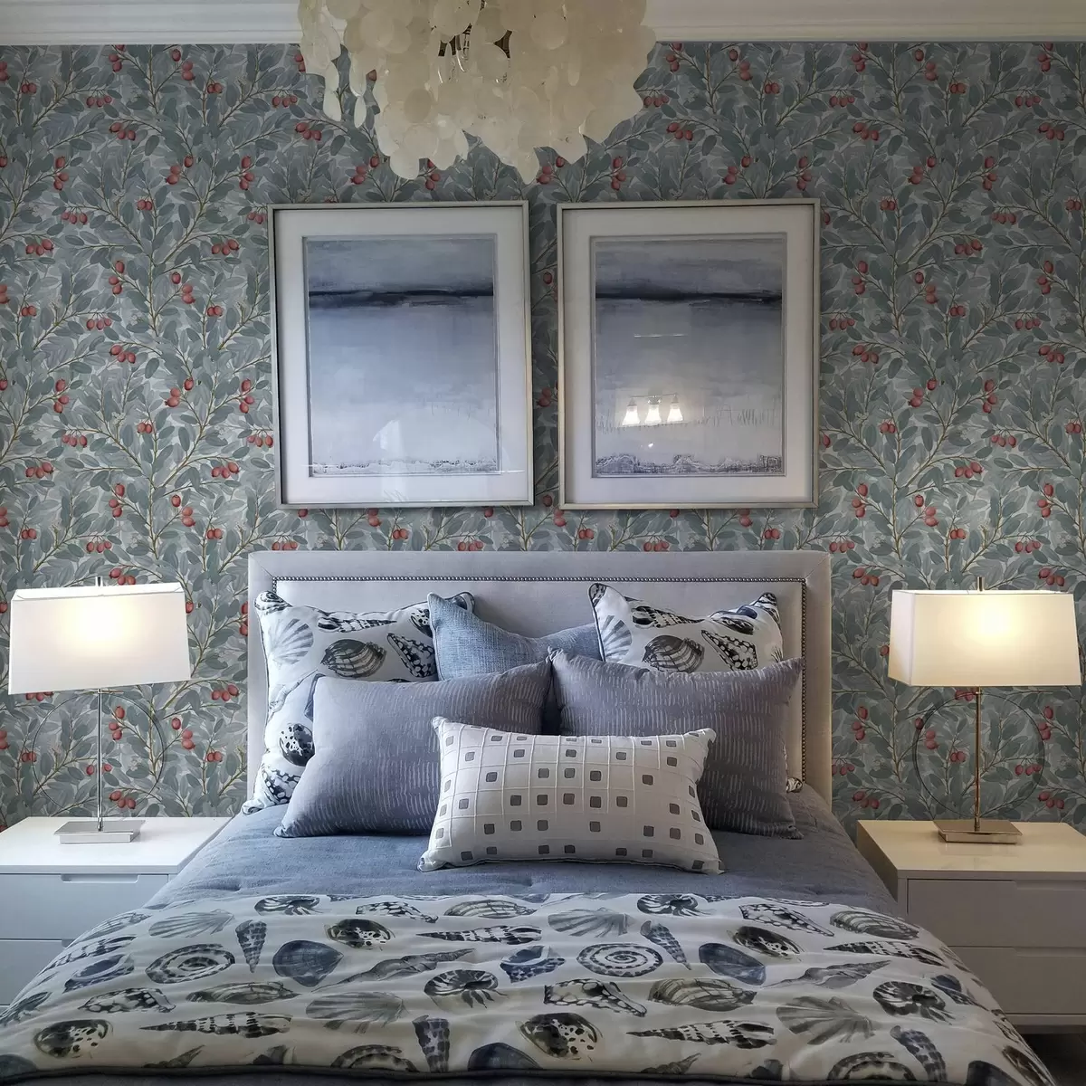 Тапет Сини листа с клончета червени плодове Nr. a00309