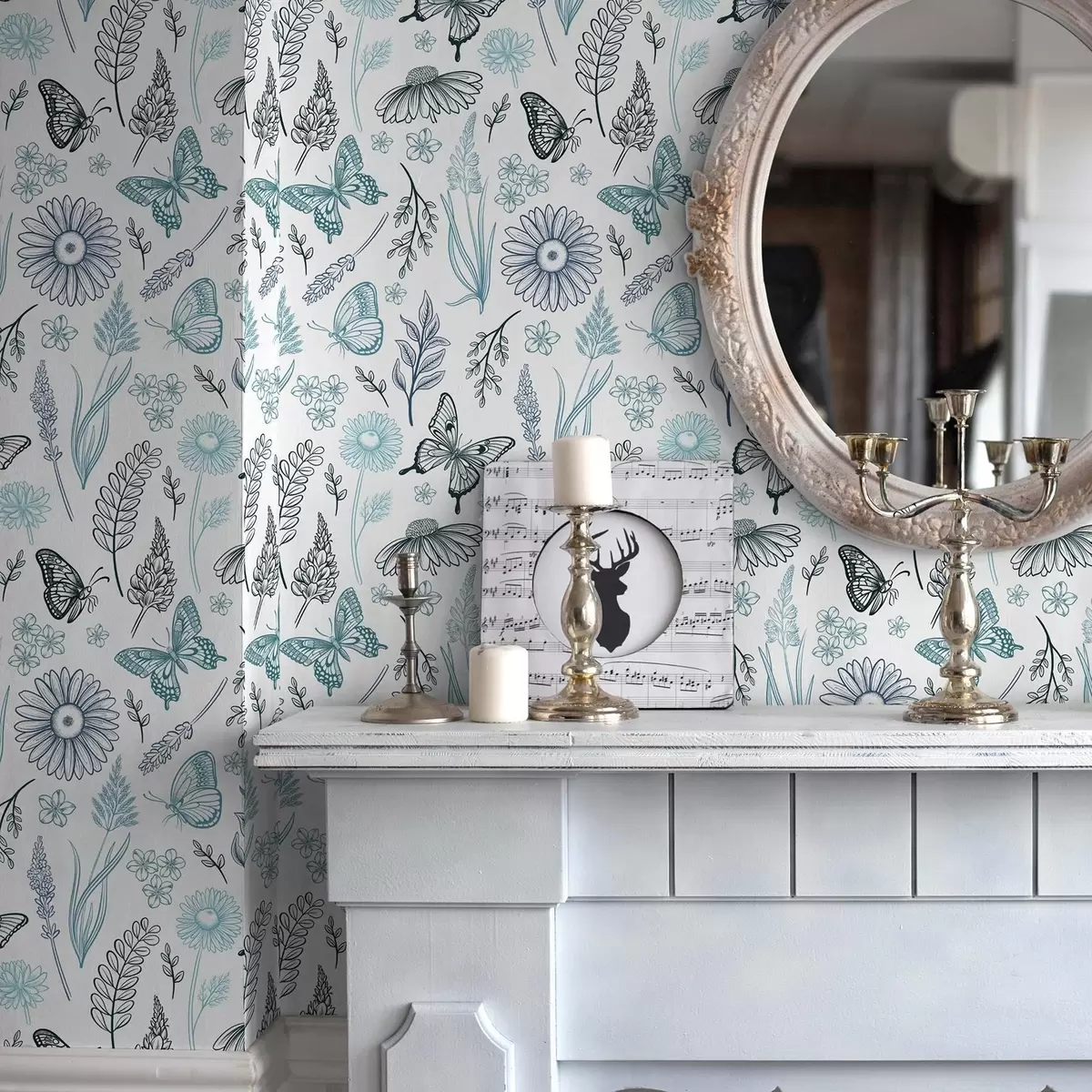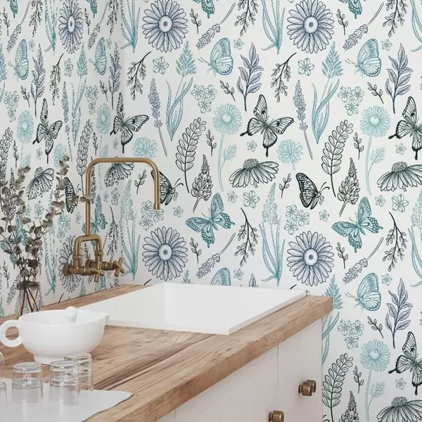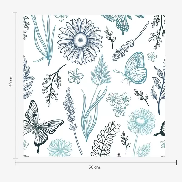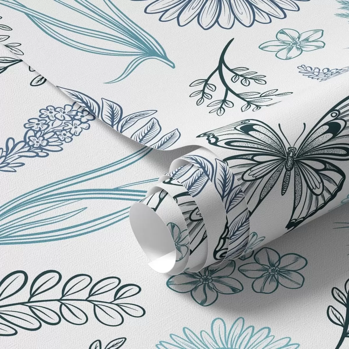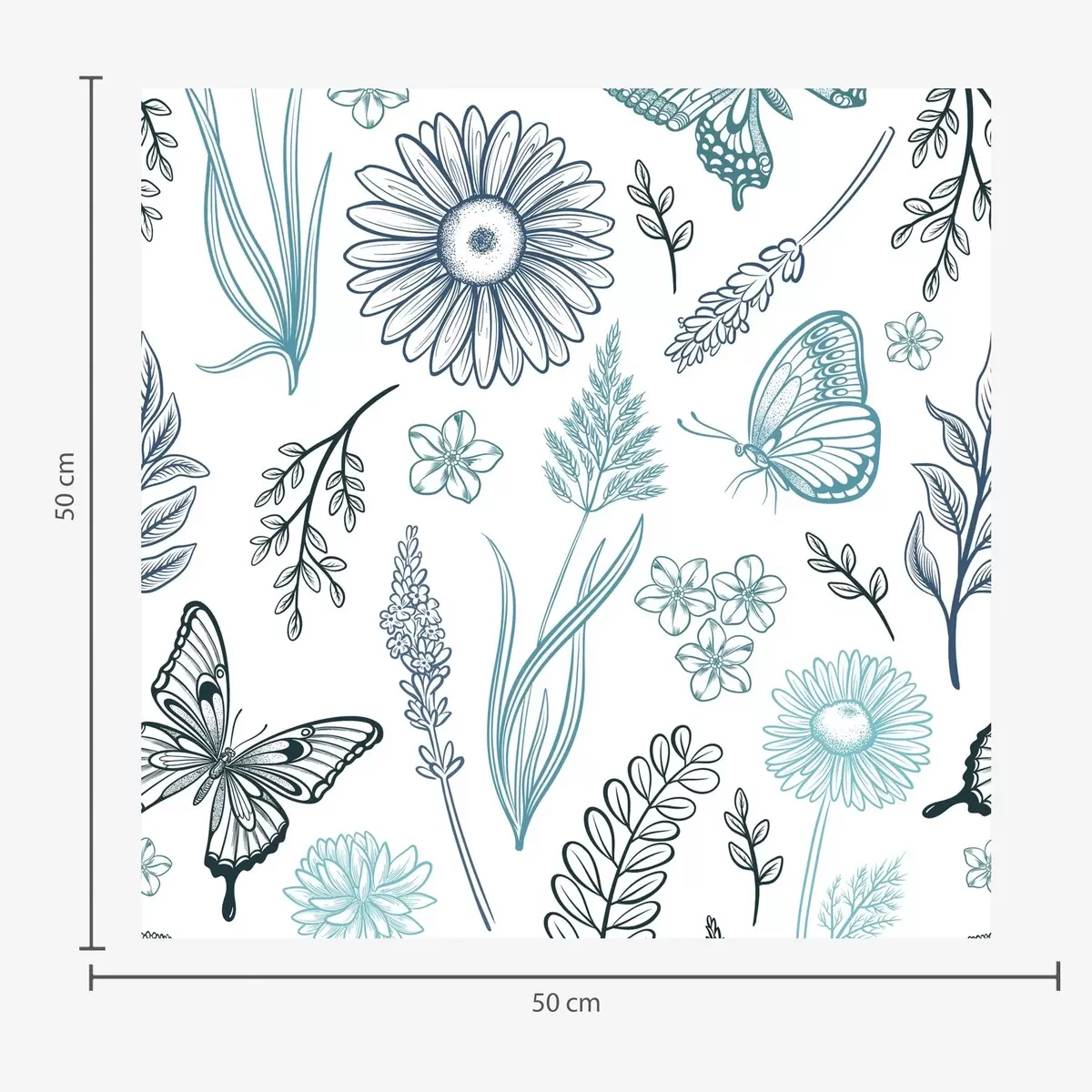 Тапет Контурни пеперуди и цветя в сини и сини тонове Nr. a00311