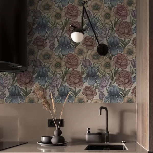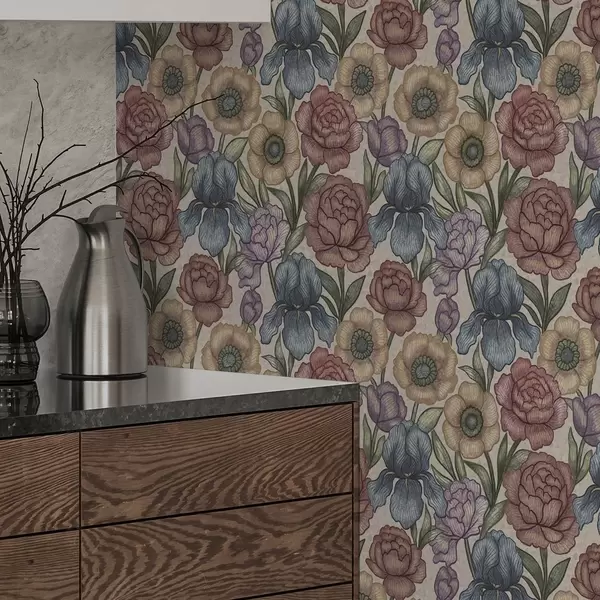 Тапет Големи флорални илюстрации с ириси и божури Nr. a00325