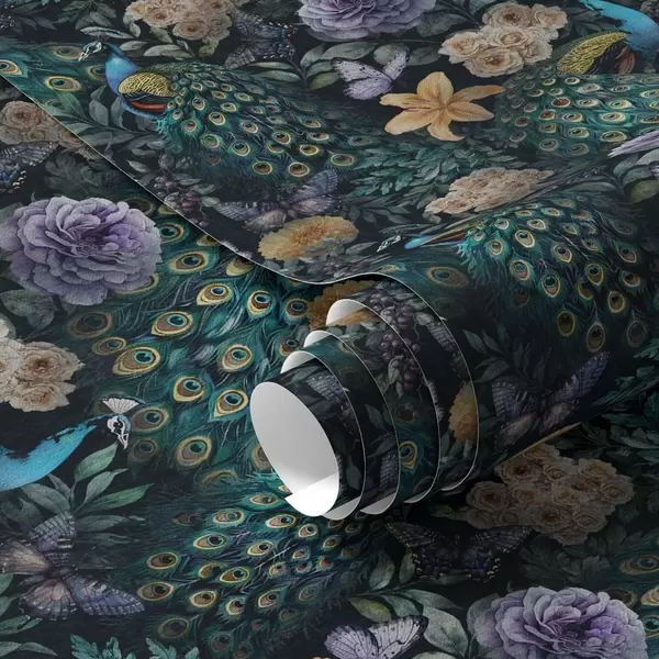 Тапет Пауни сред тъмни цветя и пеперуди Nr. a00348