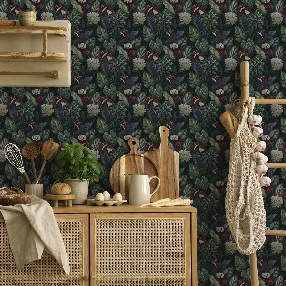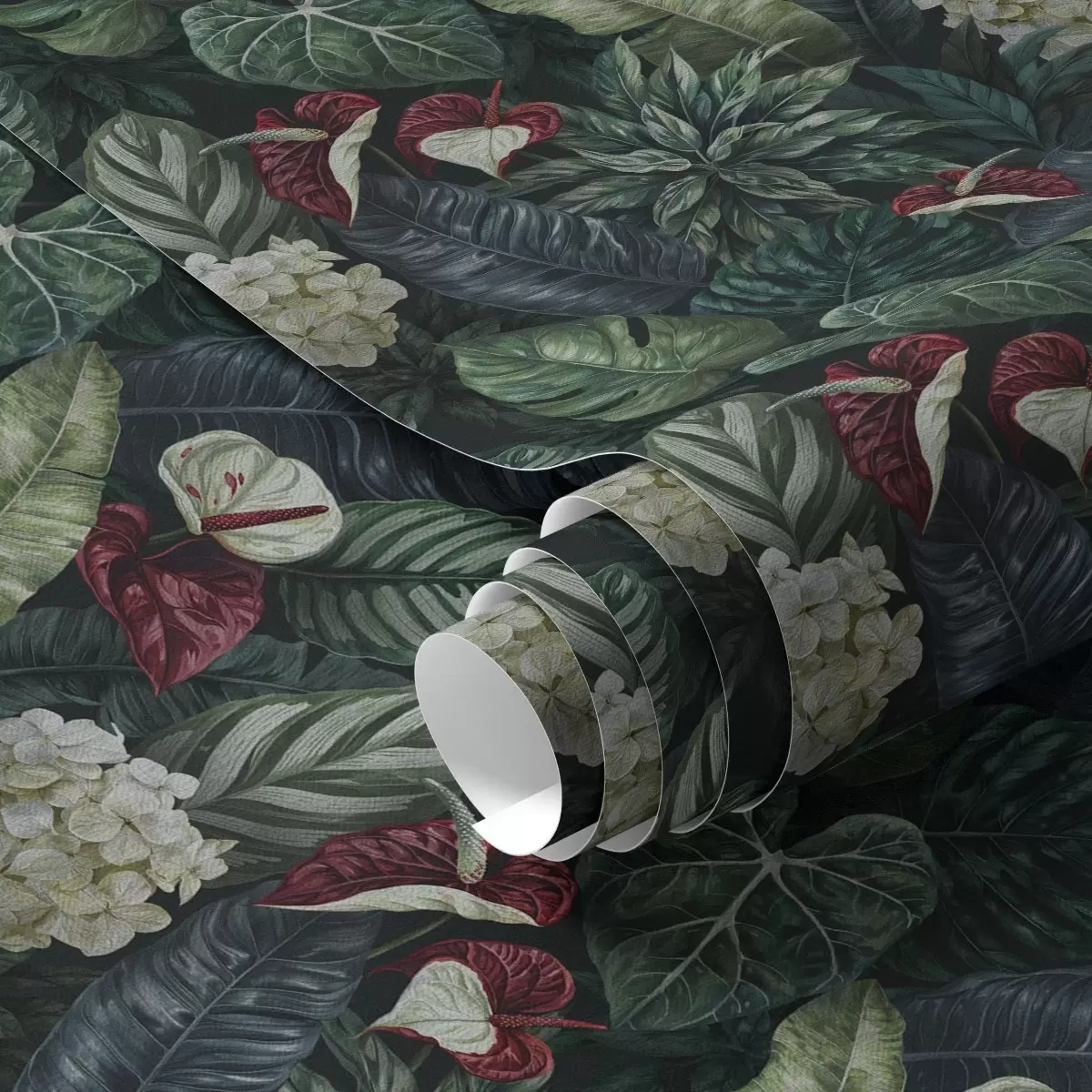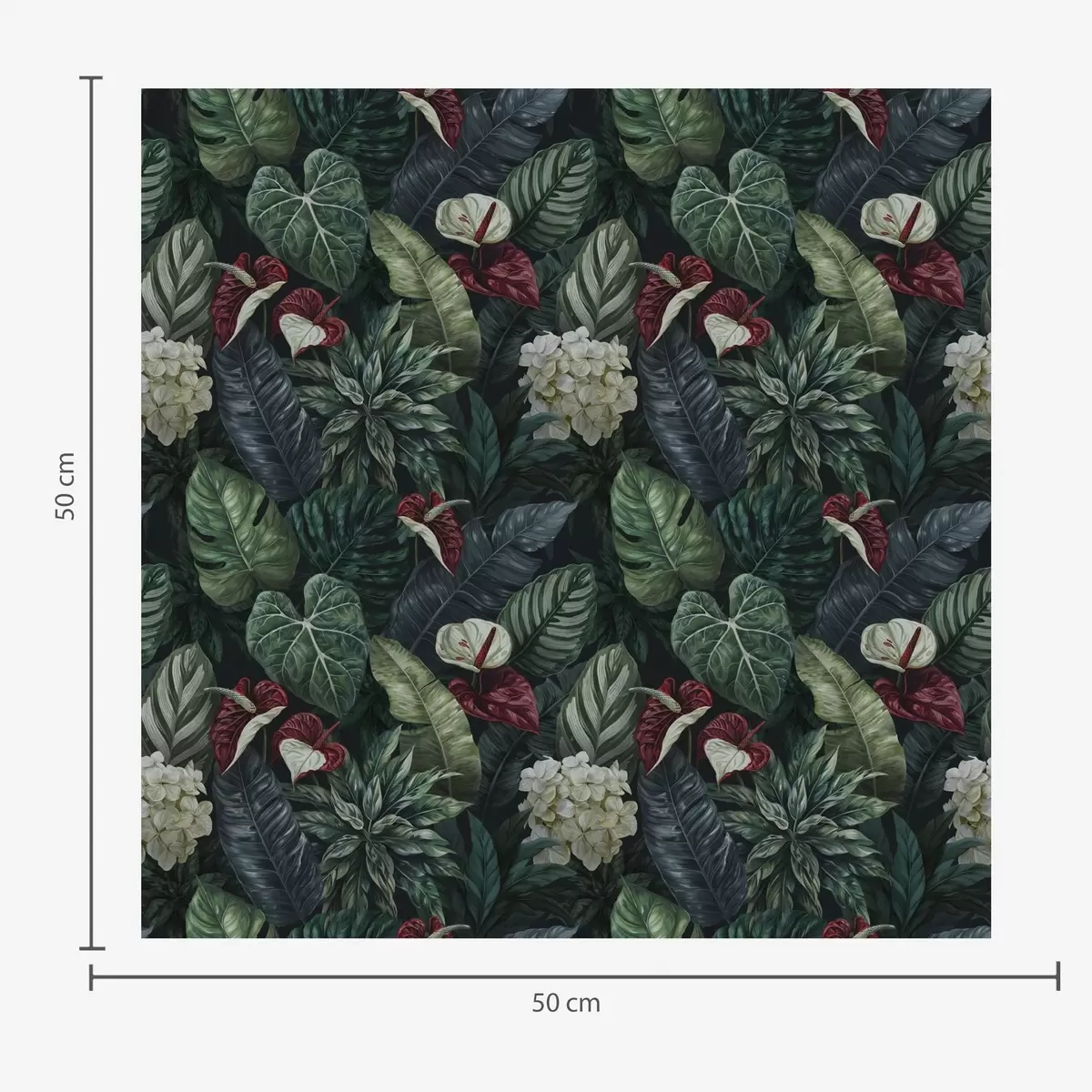 Тапет Тропически листа с бели и червени цветове Nr. a00361