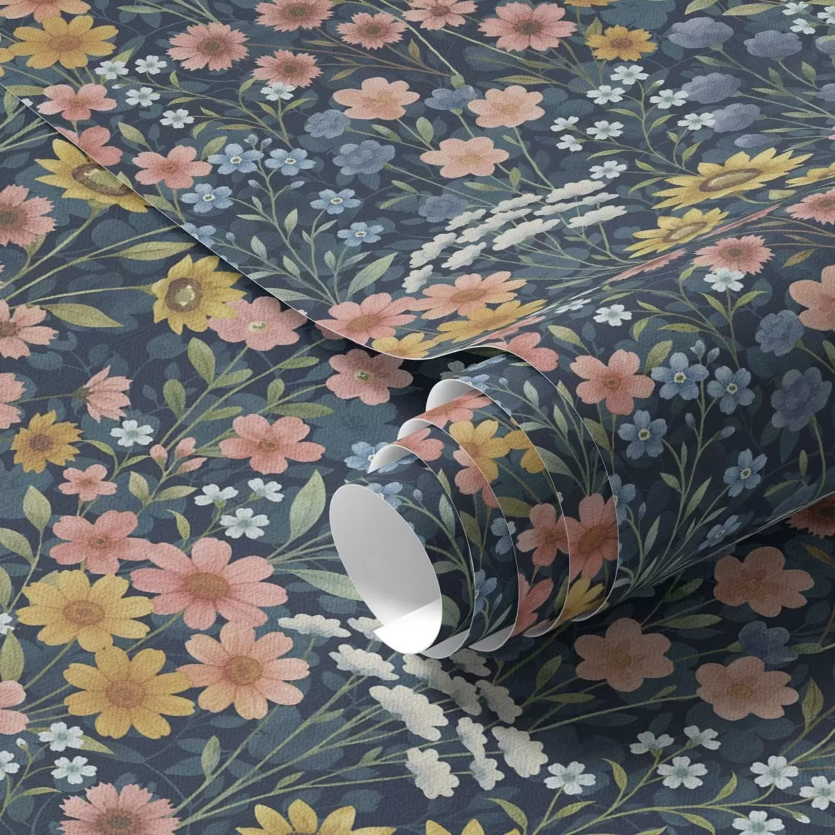 Тапет Цветни акварелни ливадни цветя върху тъмносиньо Nr. a00381