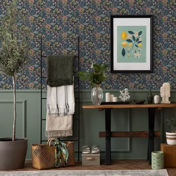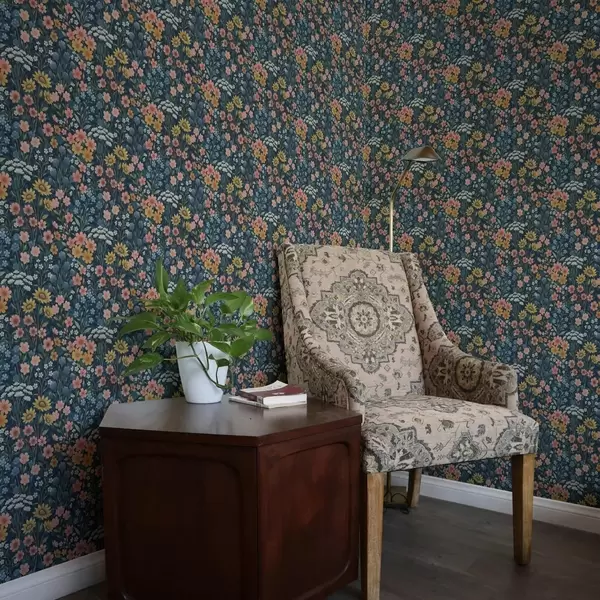 Тапет Цветни акварелни ливадни цветя върху тъмносиньо Nr. a00381
