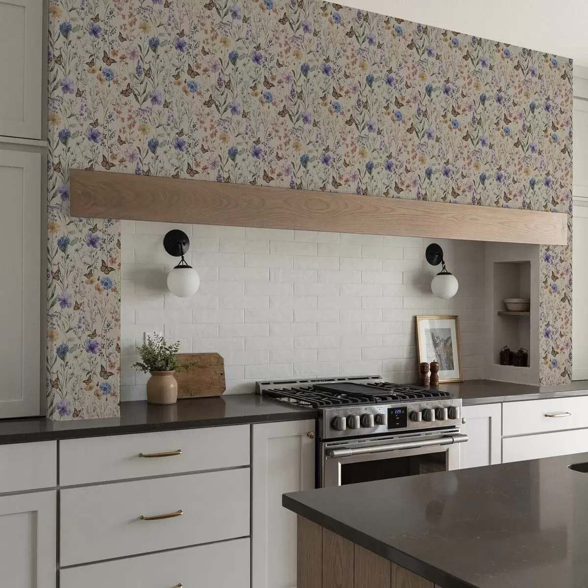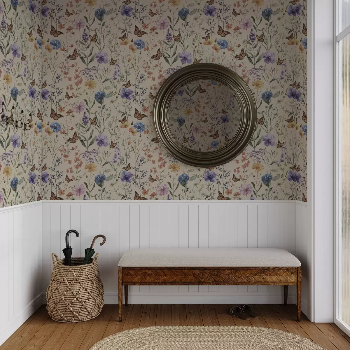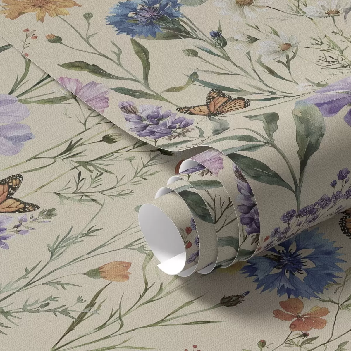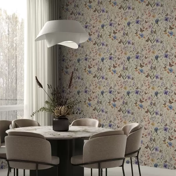 Тапет Диви цветя и пеперуди в мек акварелен стил Nr. a00389