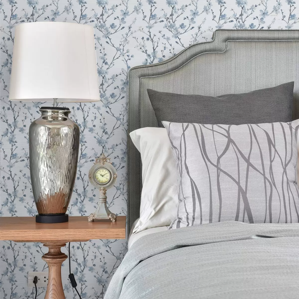 Тапет Сини черешови цветове на бял фон с мек контраст Nr. a00399