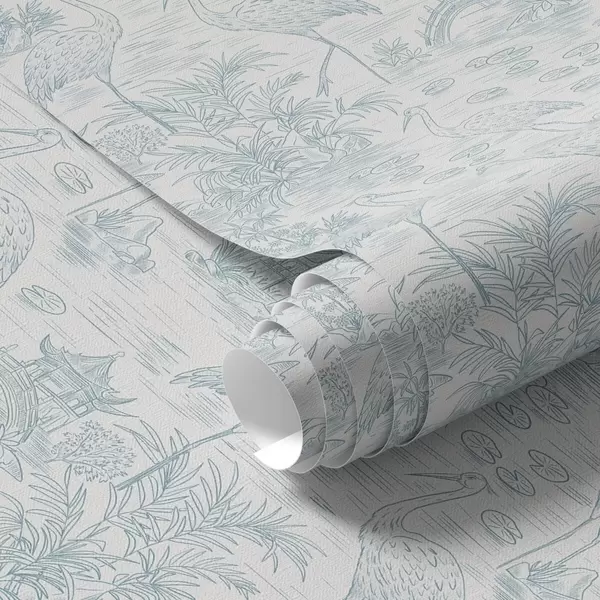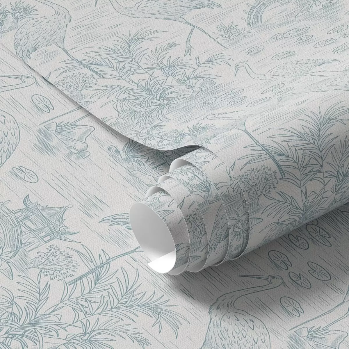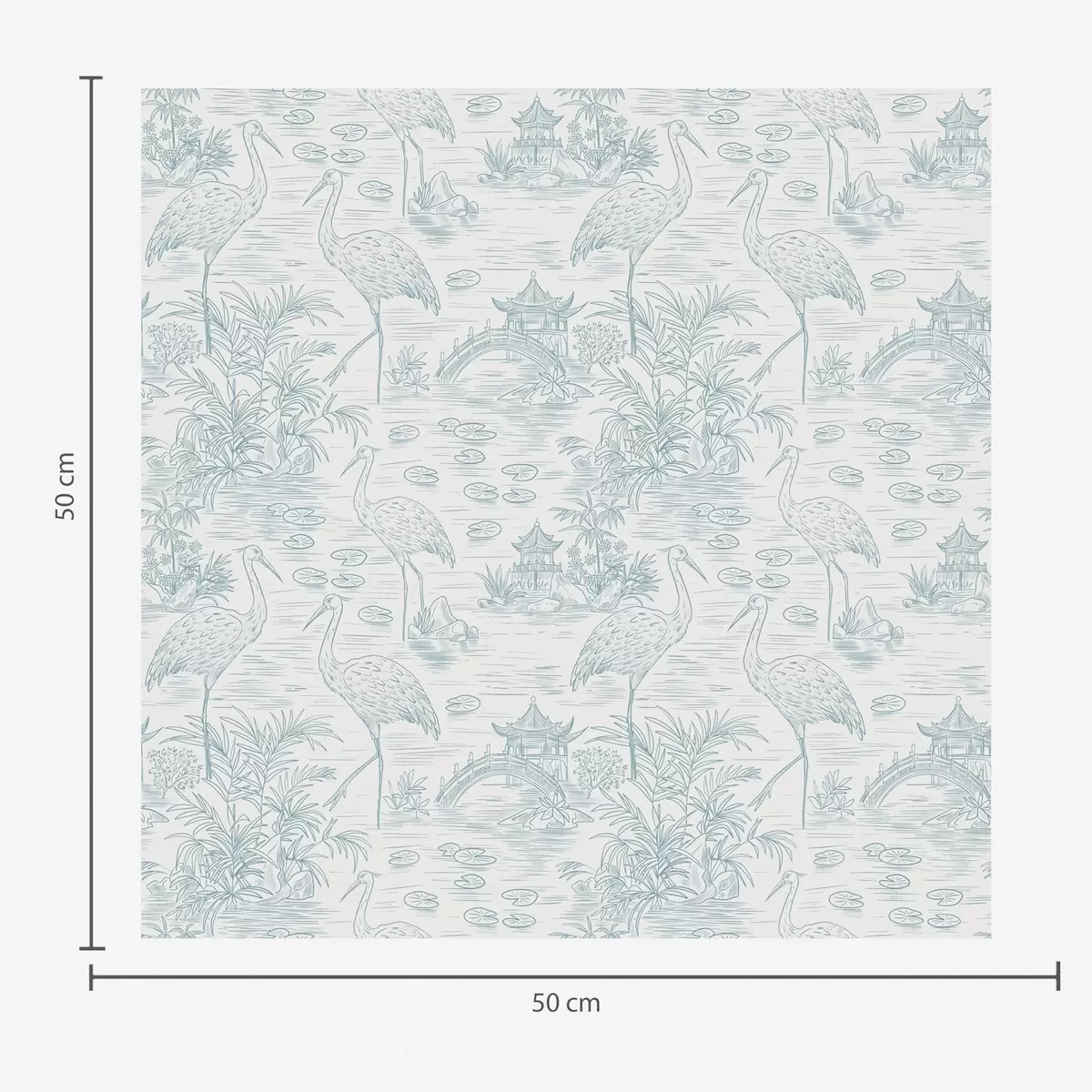 Тапет Азиатски пейзаж с жерави, мостове и лотоси Nr. a00405