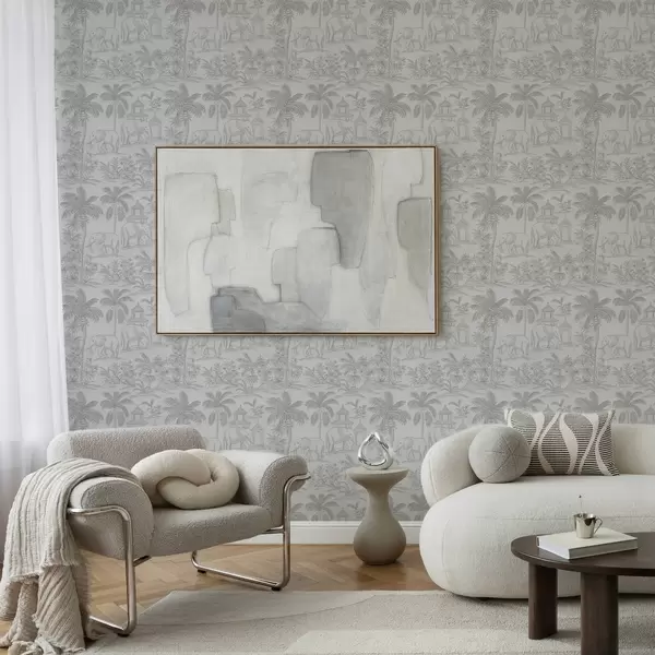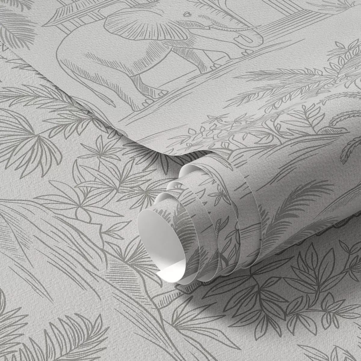 Тапет Монохромни слонове и джунгла в графичен стил Nr. a00410