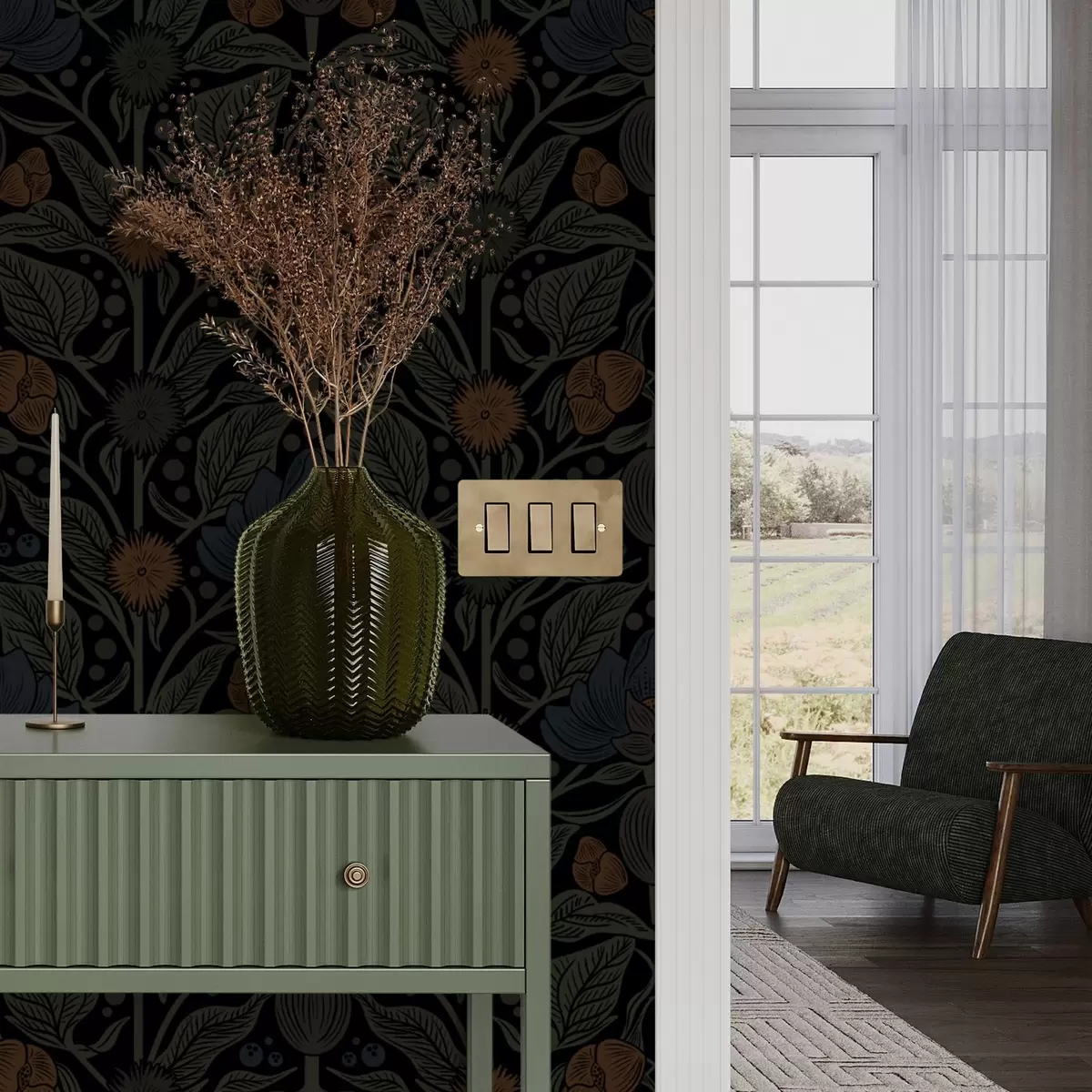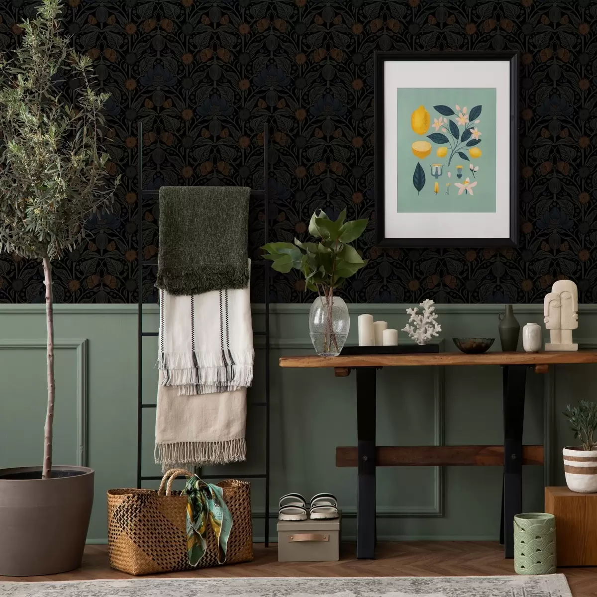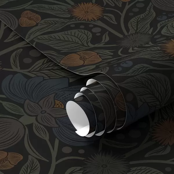 Тапет Тъмни флорални орнаменти с оранжеви акценти Nr. a00411