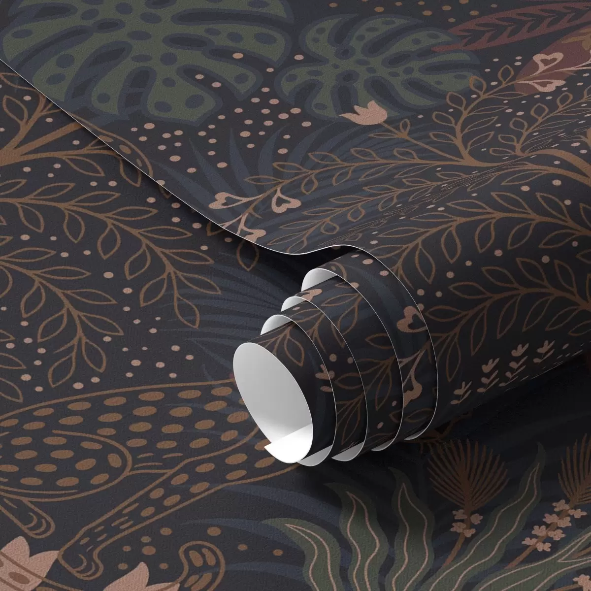 Тапет Тъмна джунгла с леопарди палми и цветя Nr. a00424