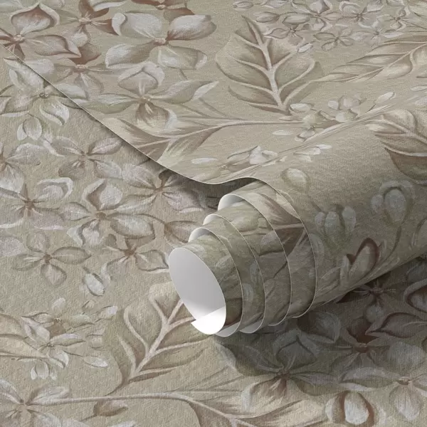 Тапет Бежови клони с бели цветя в топли нюанси Nr. a00441