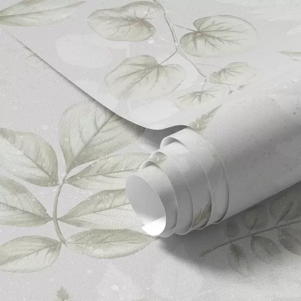 Тапет Светли акварелни листа с ефект на пръски на сив фон Nr. a00446