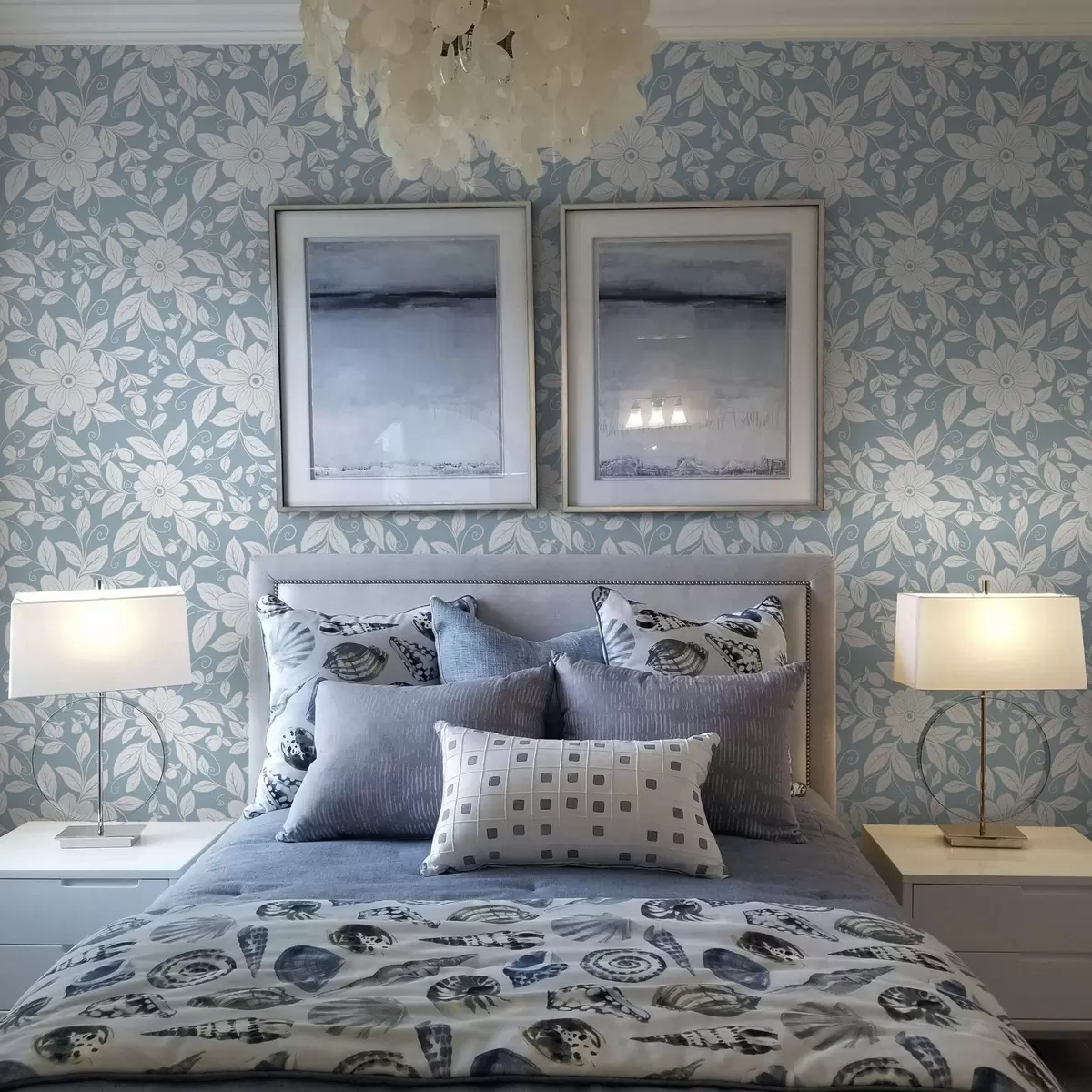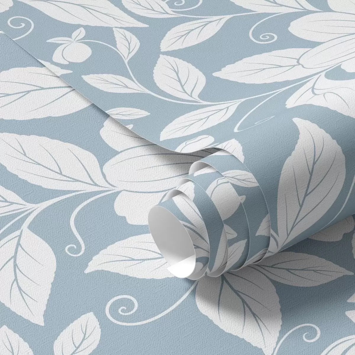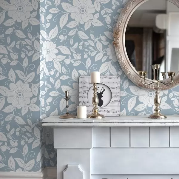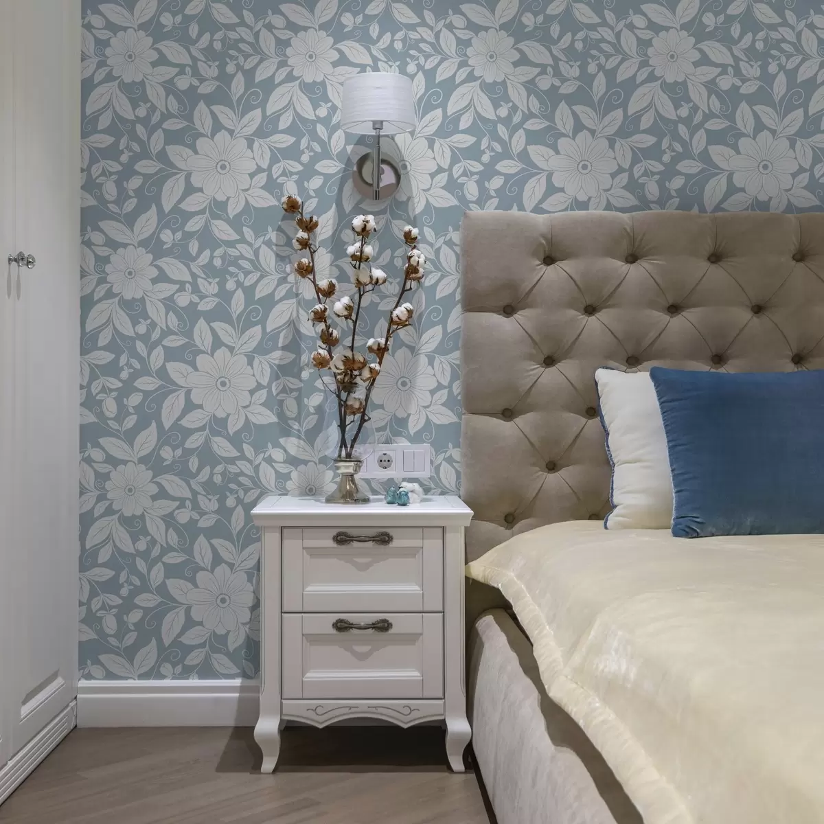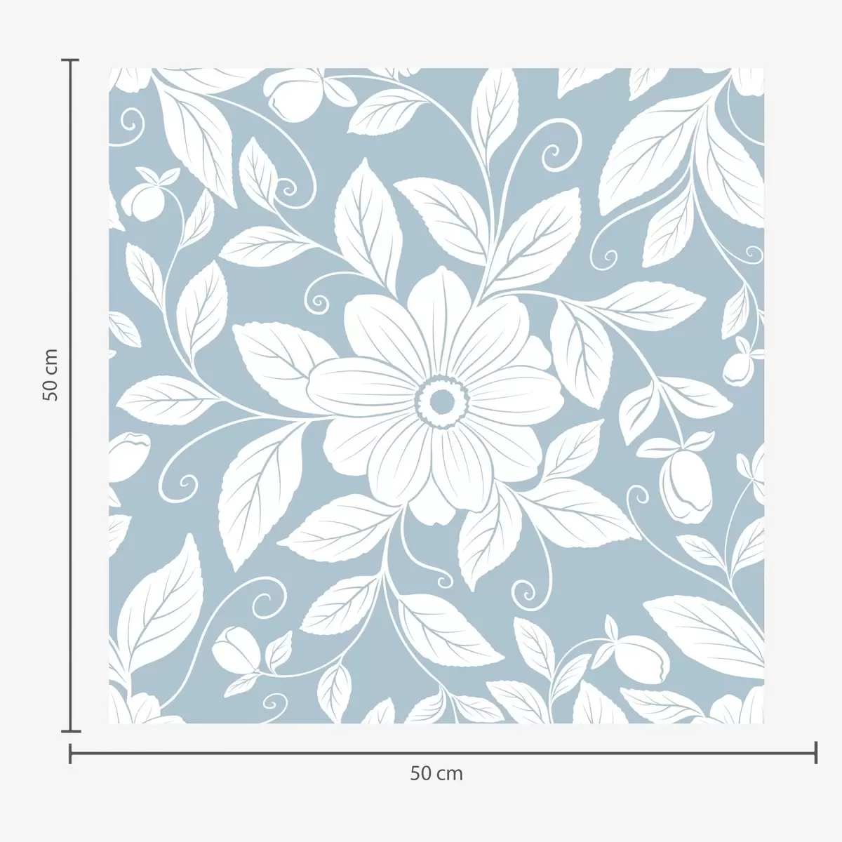 Тапет Бял цветен контур на пастелно син фон Nr. a00452
