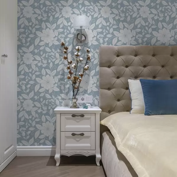 Тапет Бял цветен контур на пастелно син фон Nr. a00452