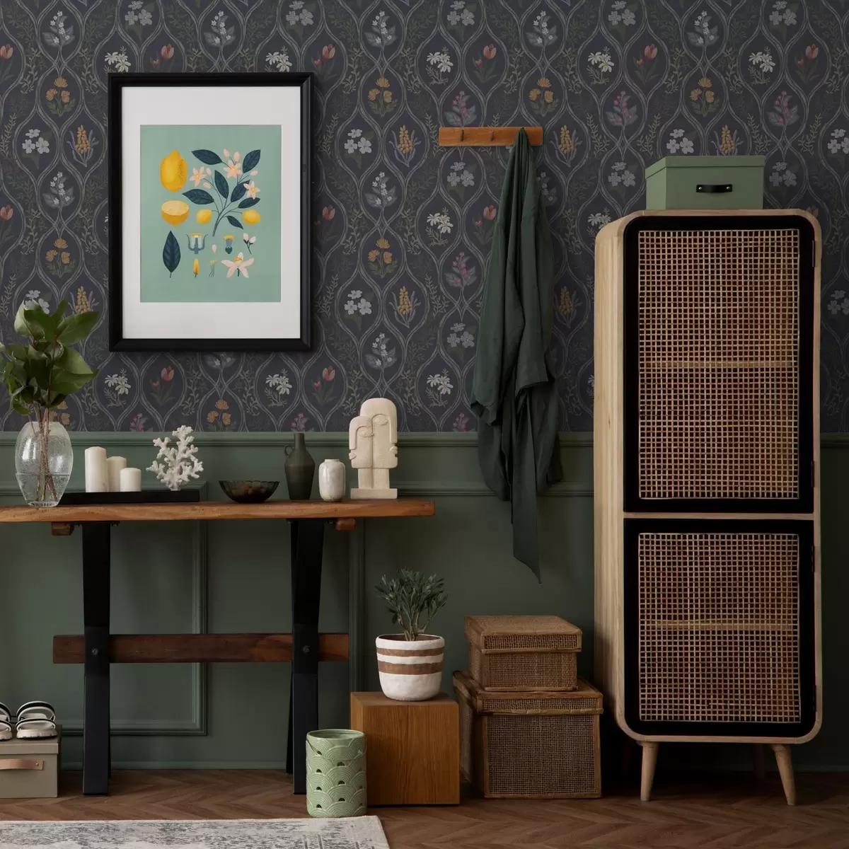 Тапет Тъмна винтидж рамка с цветни градински цветя Nr. a00454