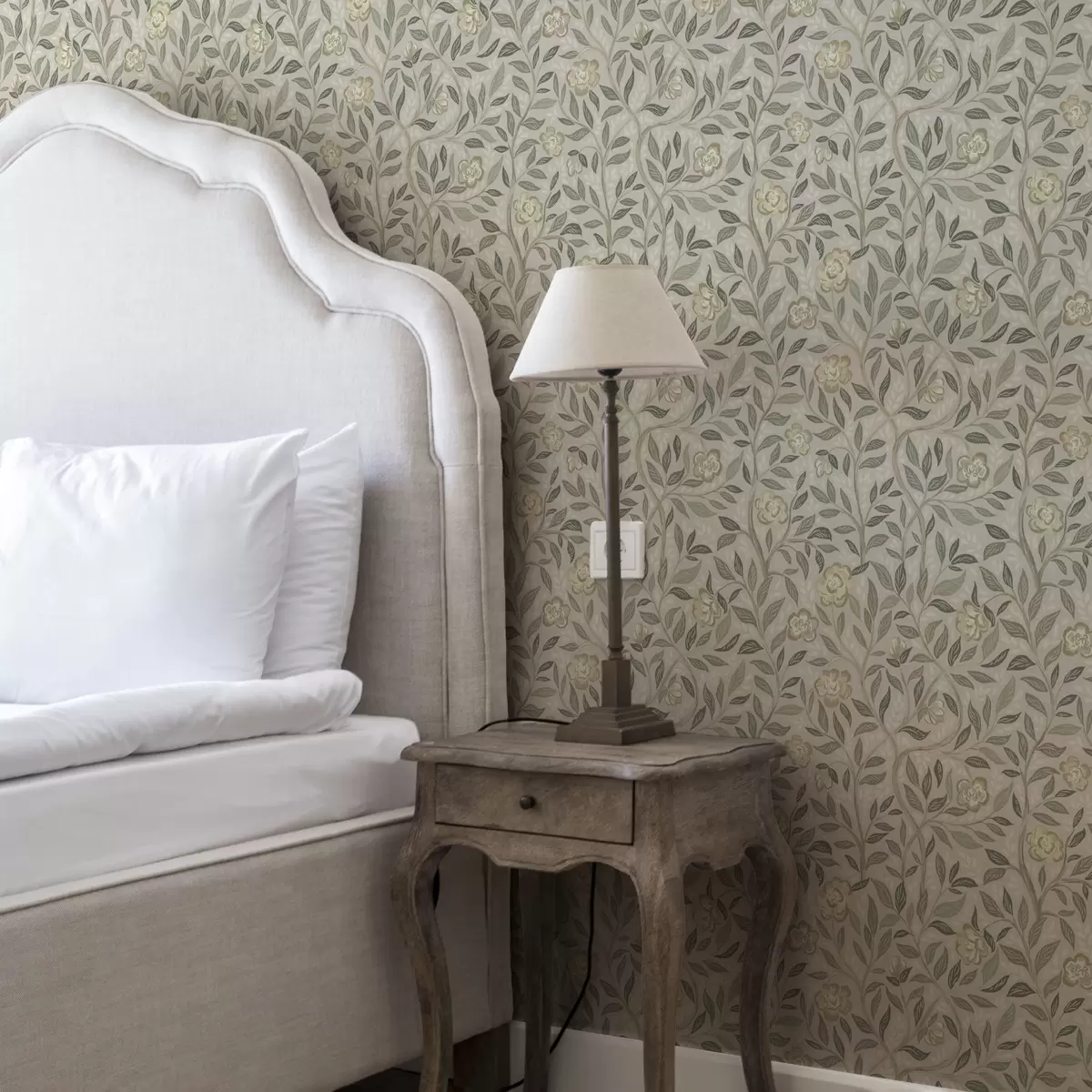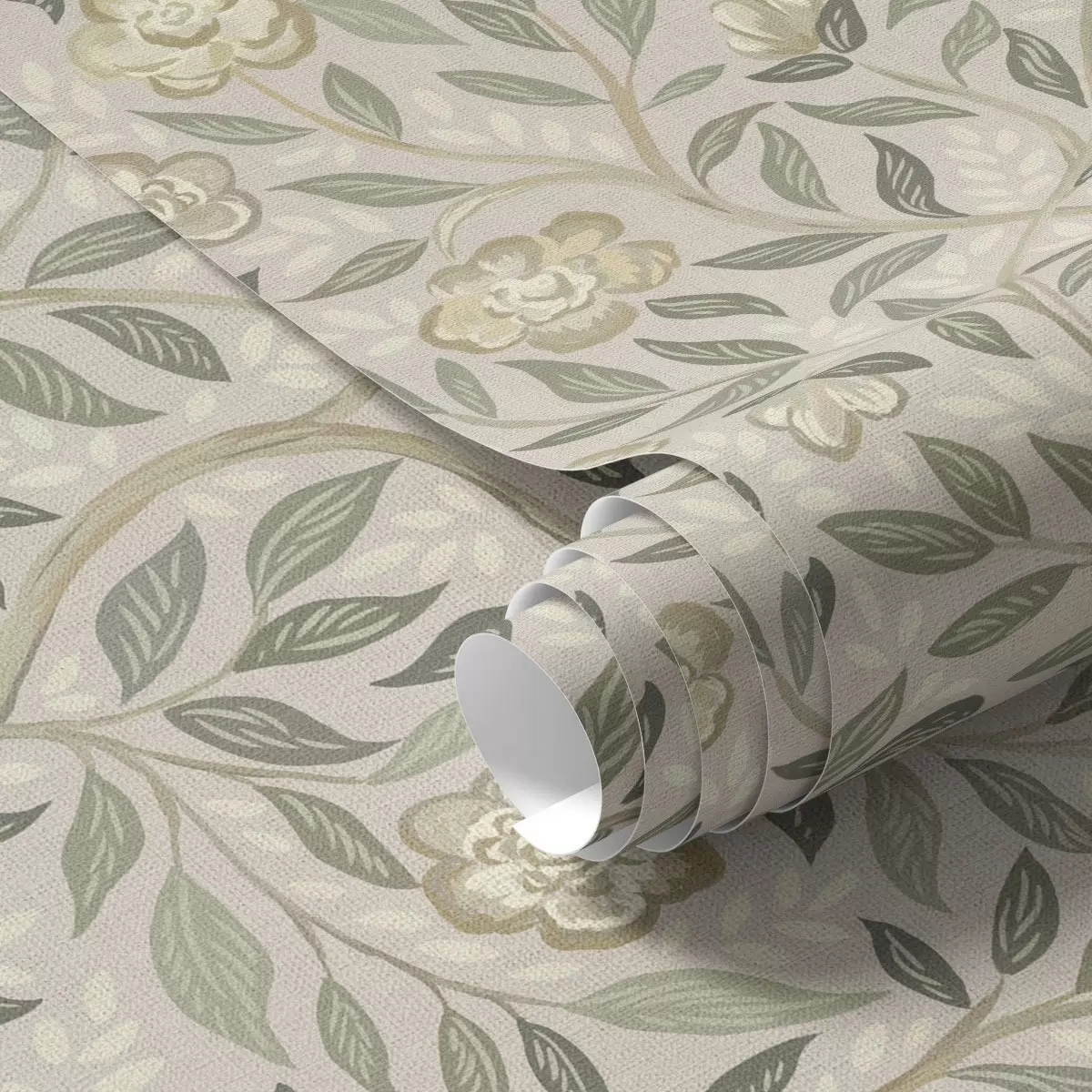 Тапет Кремави рози и маслинови листа на прашно розов фон Nr. a00455