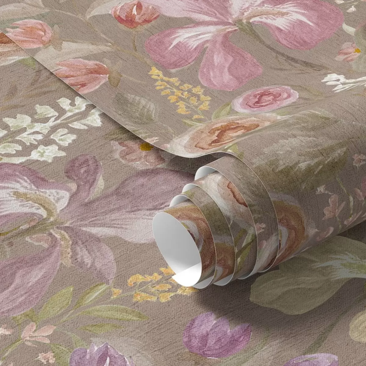 Тапет Реколта розов ирис цвете модел на бежов текстуриран фон Nr. a00457