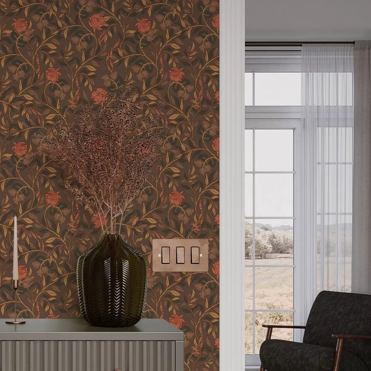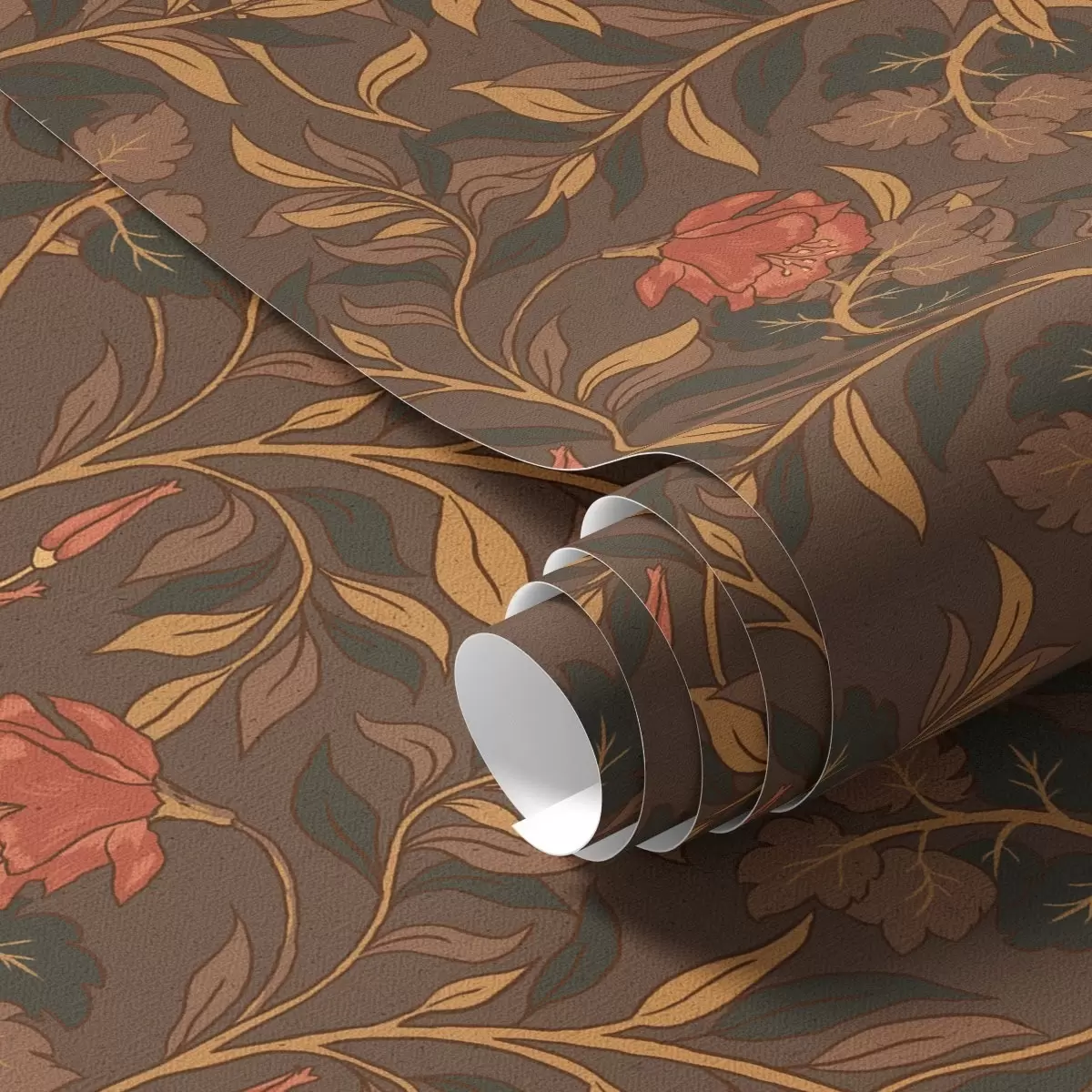 Тапет Цъфтящи теракотени клони на кафяв фон Nr. a00460