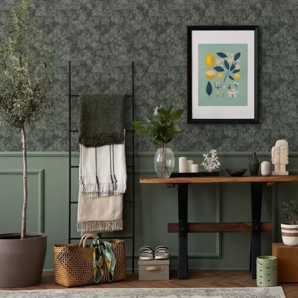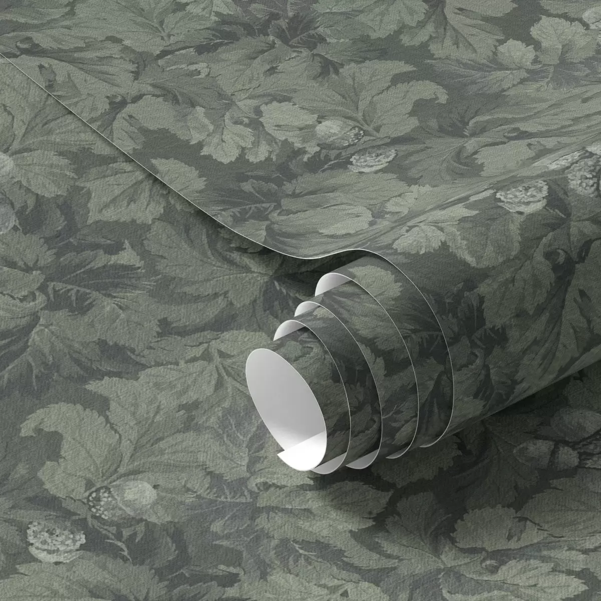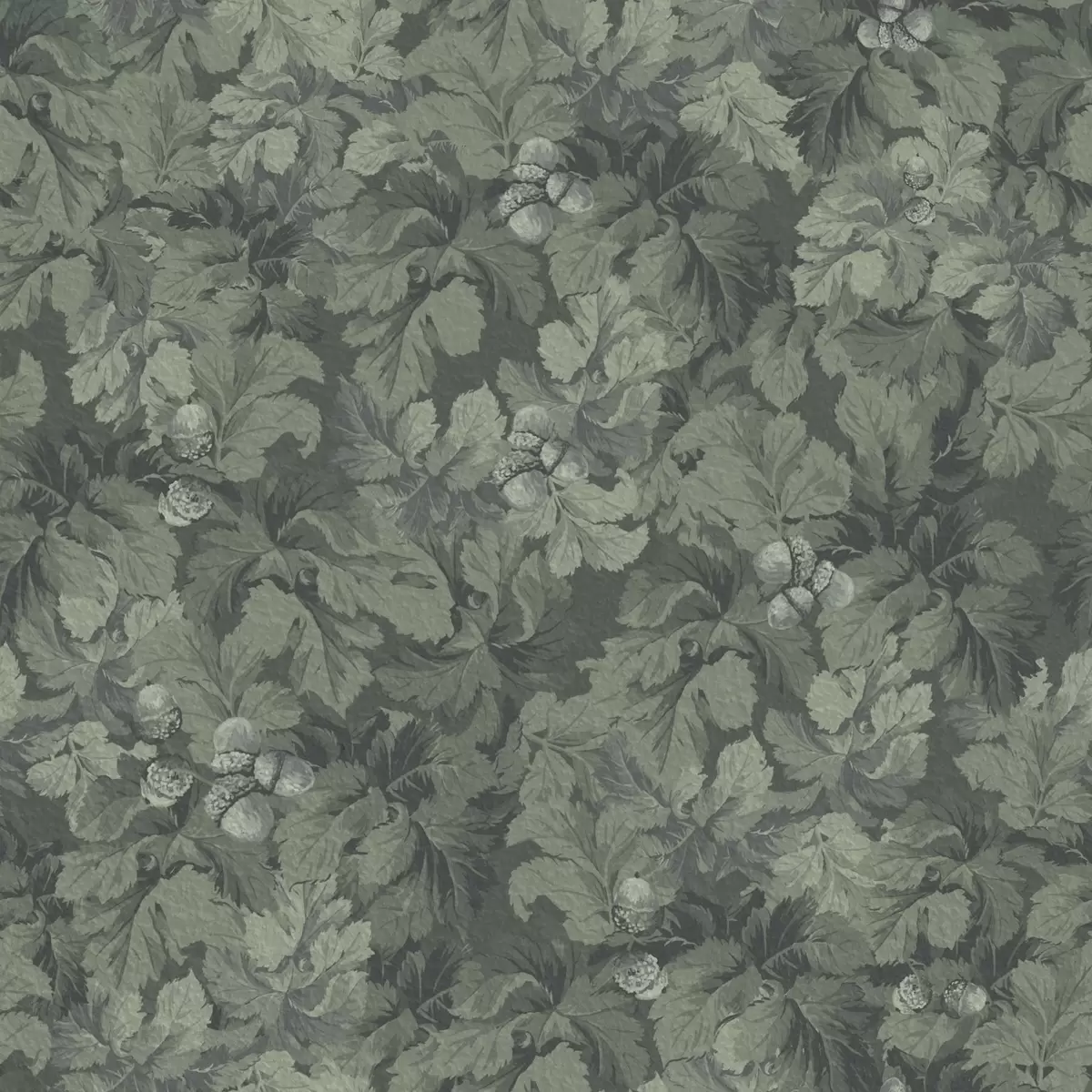 Тапет Тъмна текстура на листата с жълъди в наситено зелено Nr. a00461