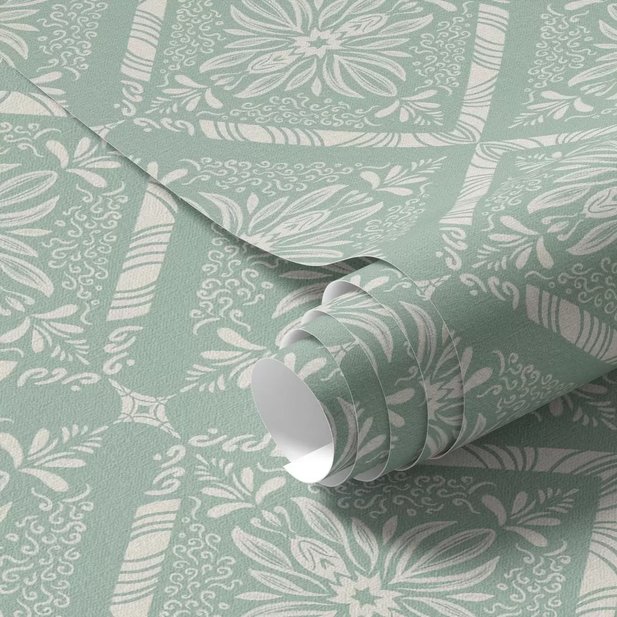 Тапет Геометричен модел в тюркоазено и бежово с къдрици Nr. a00466