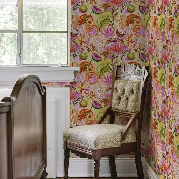 Тапет Екзотични плодове, листа и хамелеони в тропически стил Nr. a00469