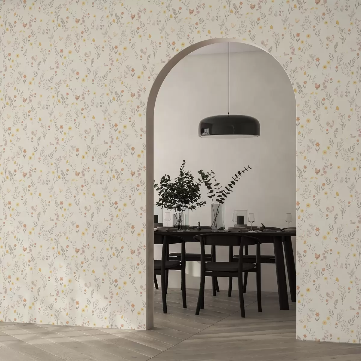 Тапет Полски цветя и пилета в меки пастелни тонове Nr. a00478