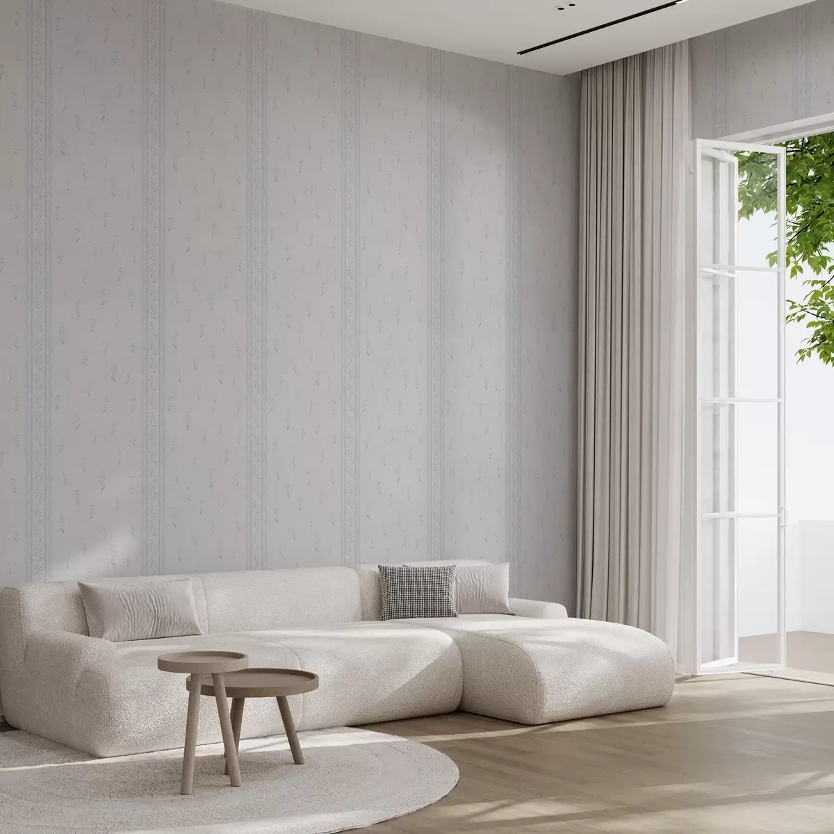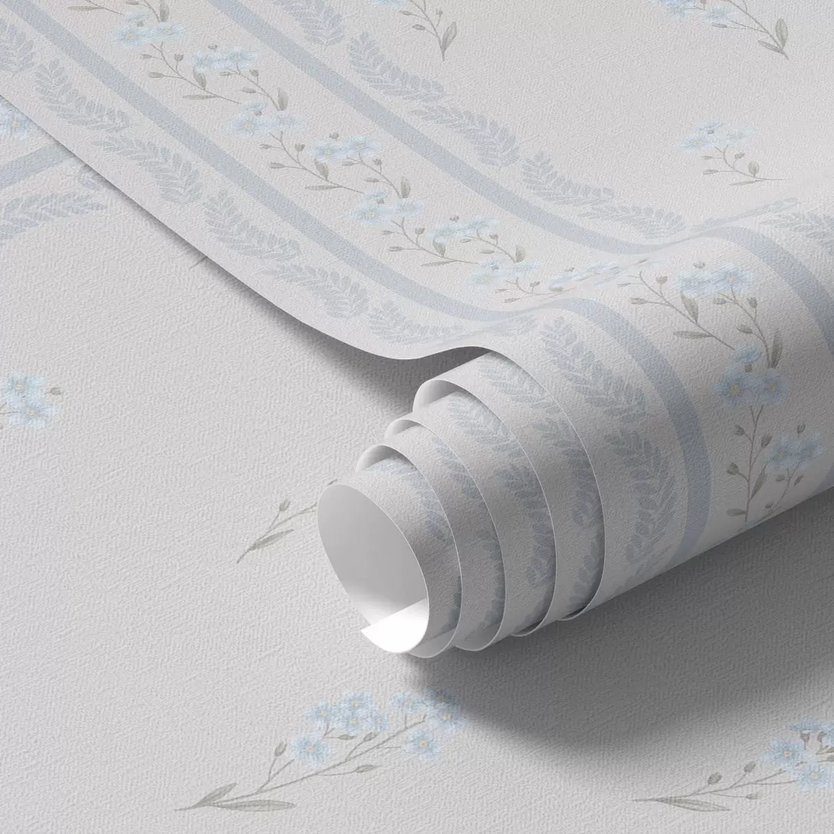 Тапет Бял фон със сини цветя и декоративна ивица Nr. a00484v1