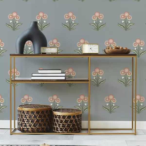 Тапет Стилизирани цветя на сиво-син фон, топла палитра Nr. a00494