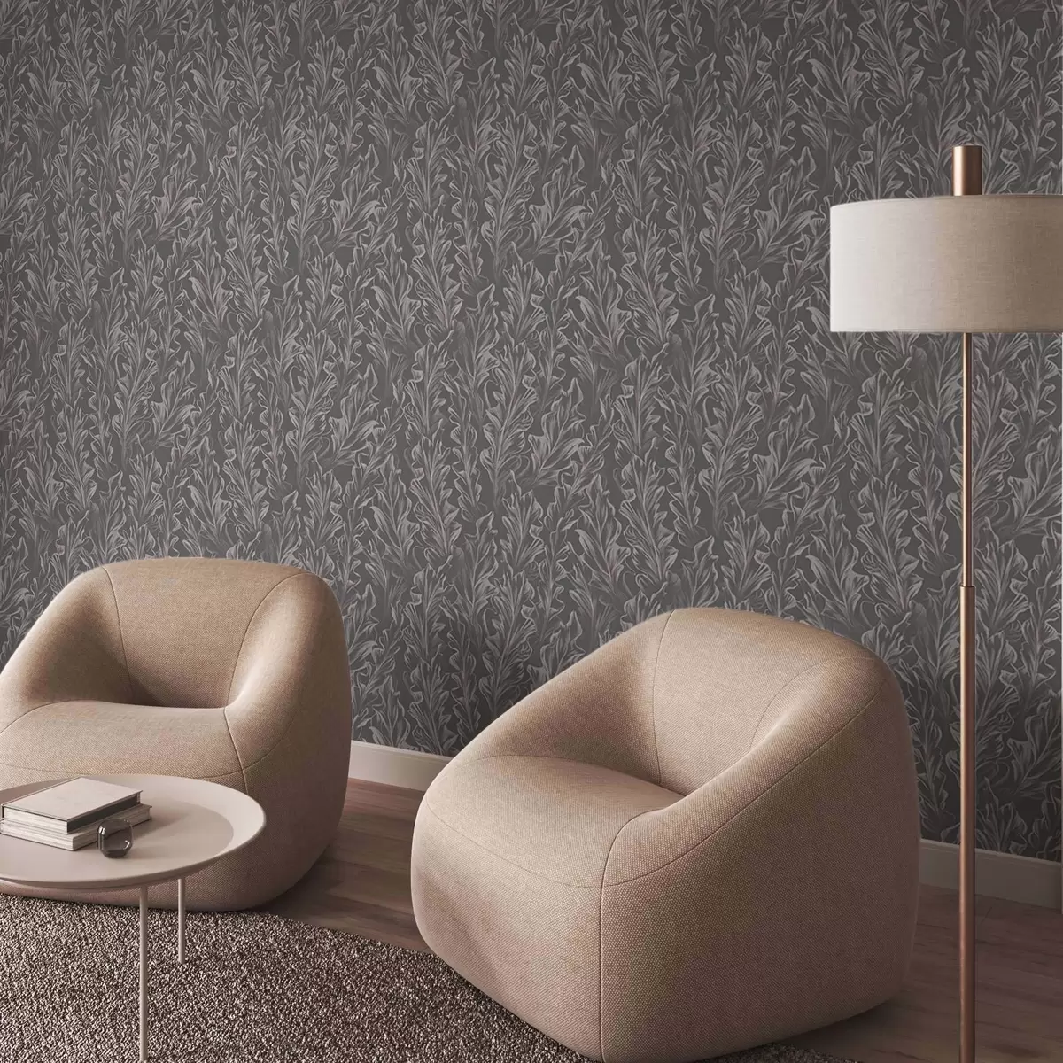 Тапет Течащи листвени вълни на графитен фон, висок контраст Nr. a00495v1