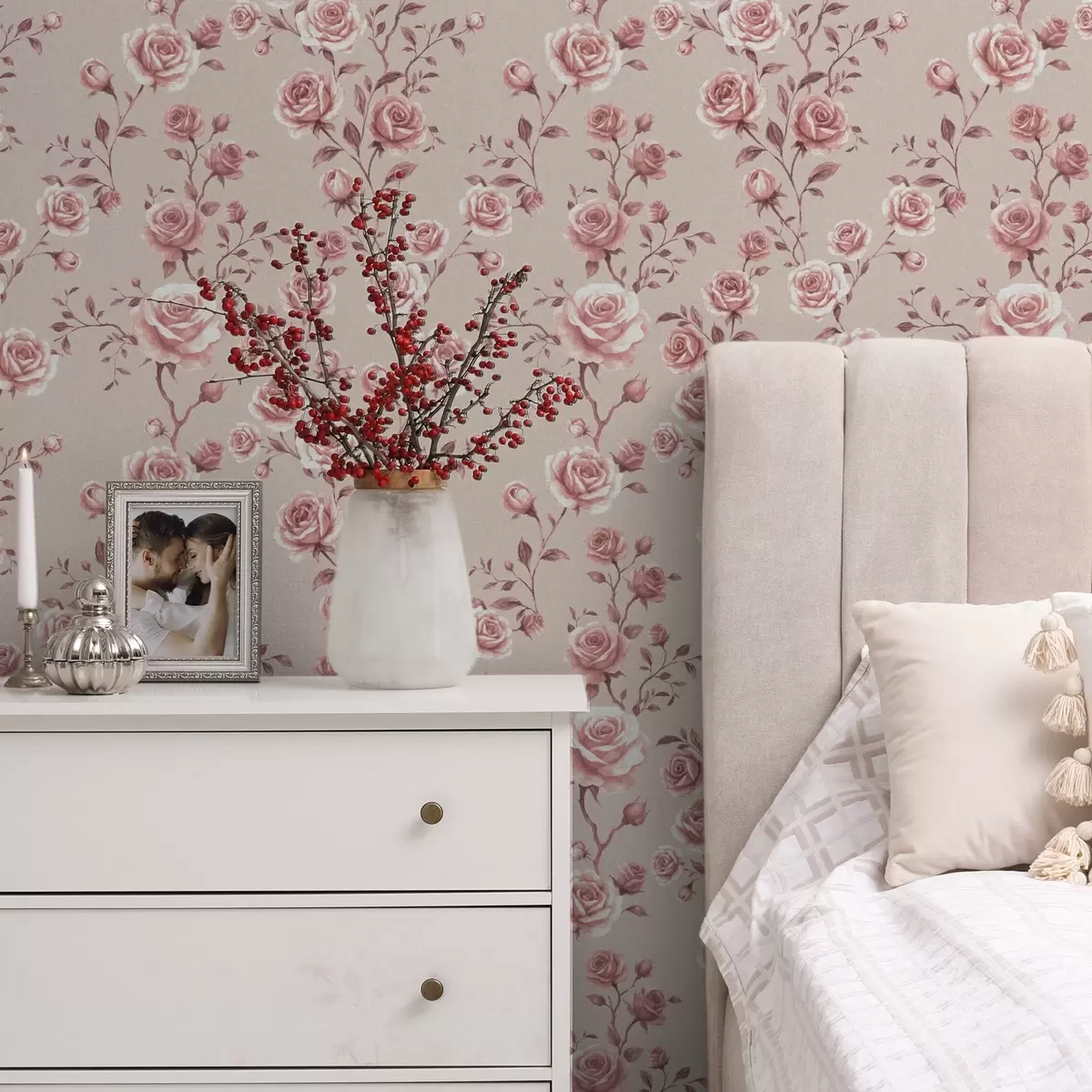 Тапет Прахни рози върху бежово — винтидж мотив Nr. a00497