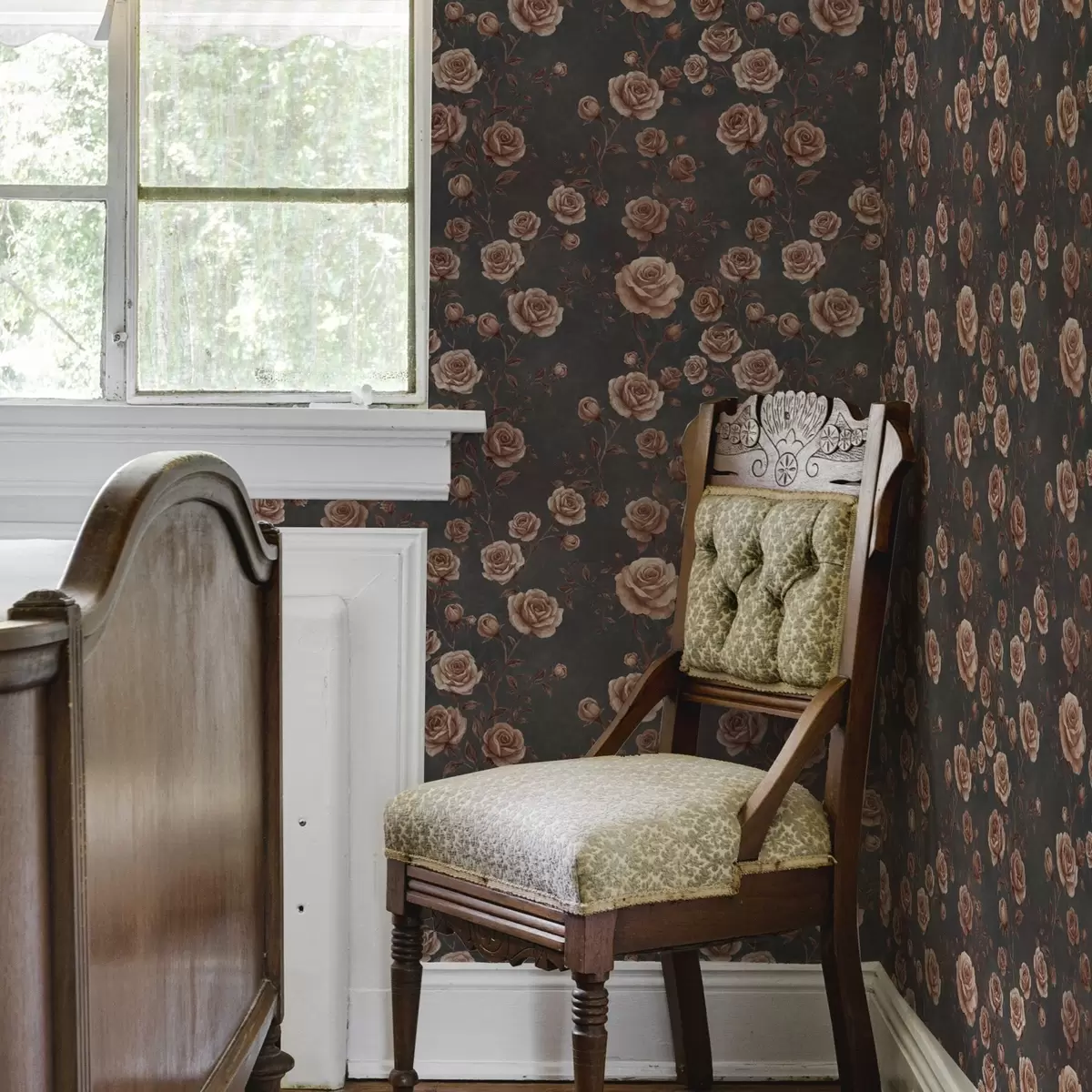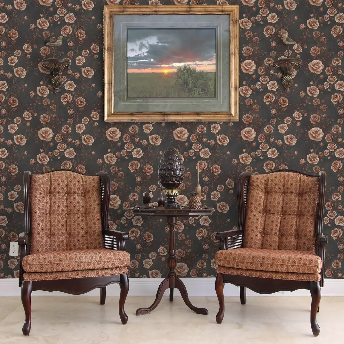 Тапет Ретро рози на графитен фон, теракотова палитра Nr. a00497v1