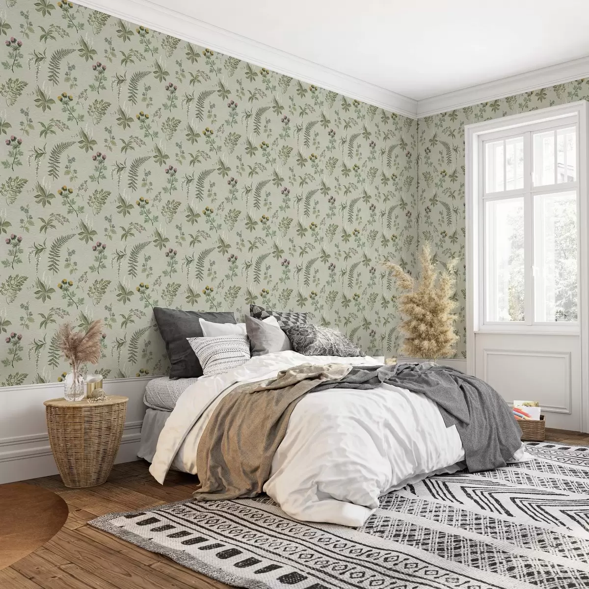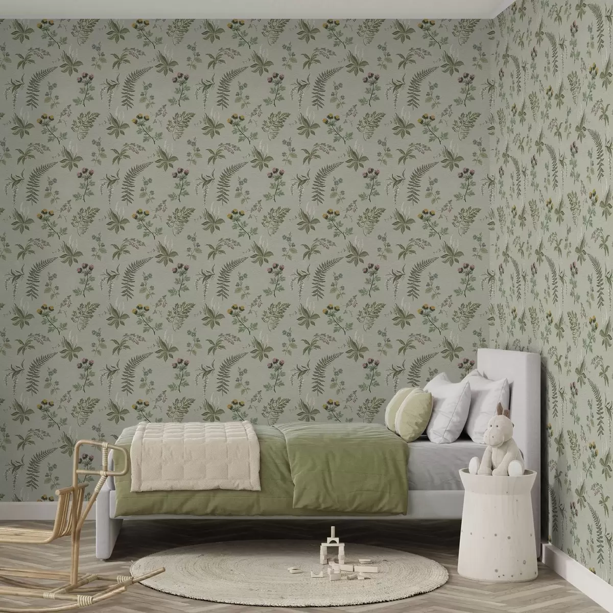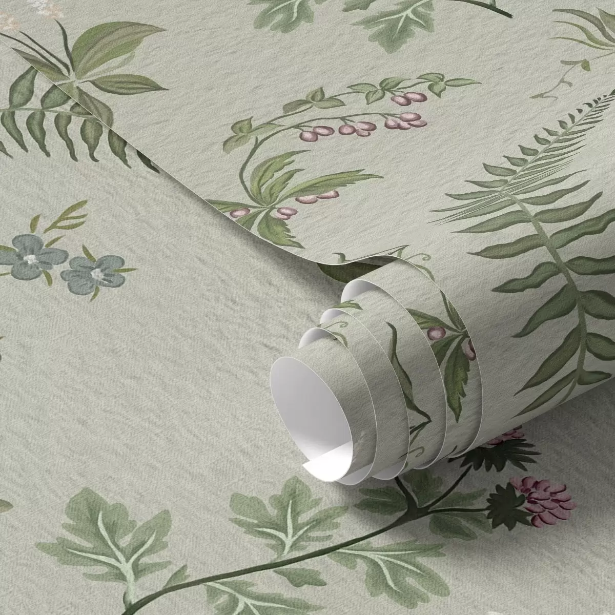 Тапет Ботанически треви и папрати в бледо сиво-зелено Nr. a00498