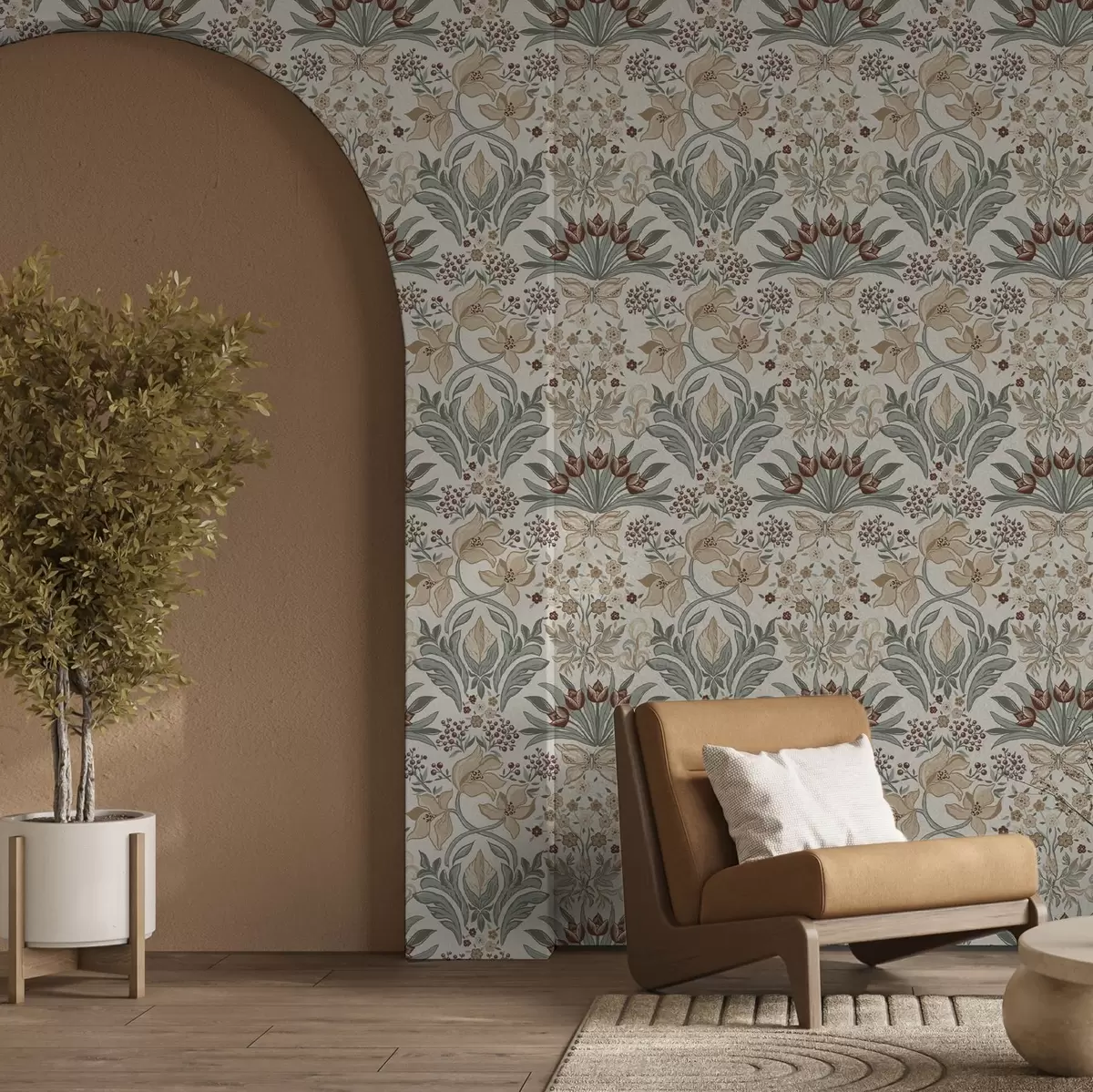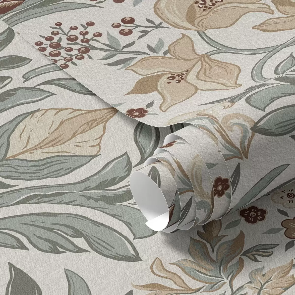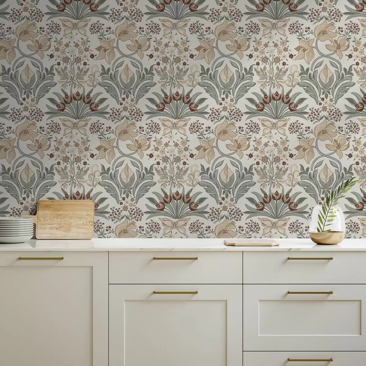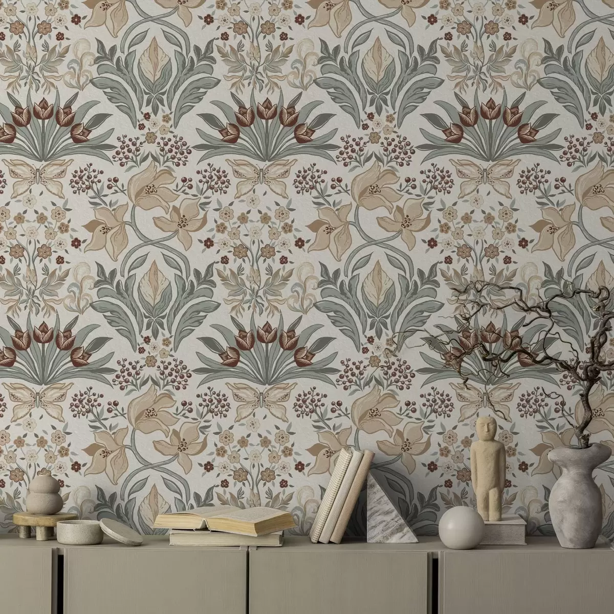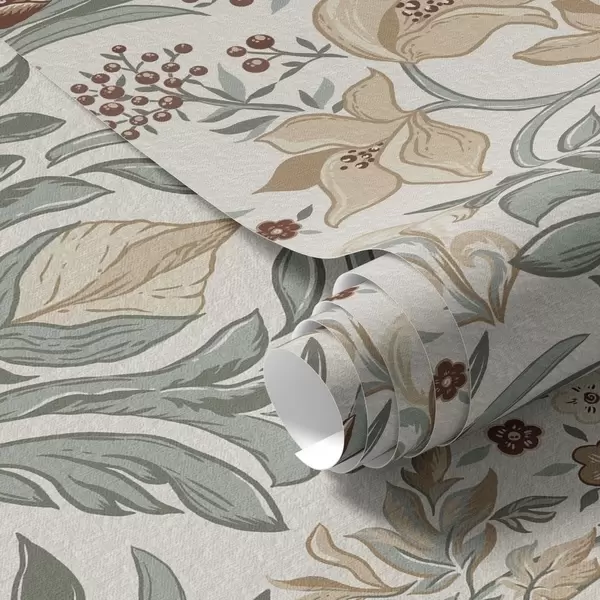 Тапет Декоративни лилии и пеперуда на кремав фон Nr. a00500