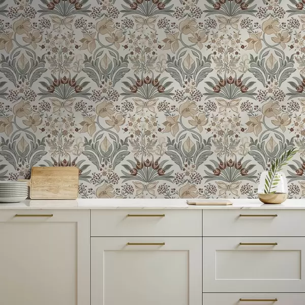 Тапет Декоративни лилии и пеперуда на кремав фон Nr. a00500