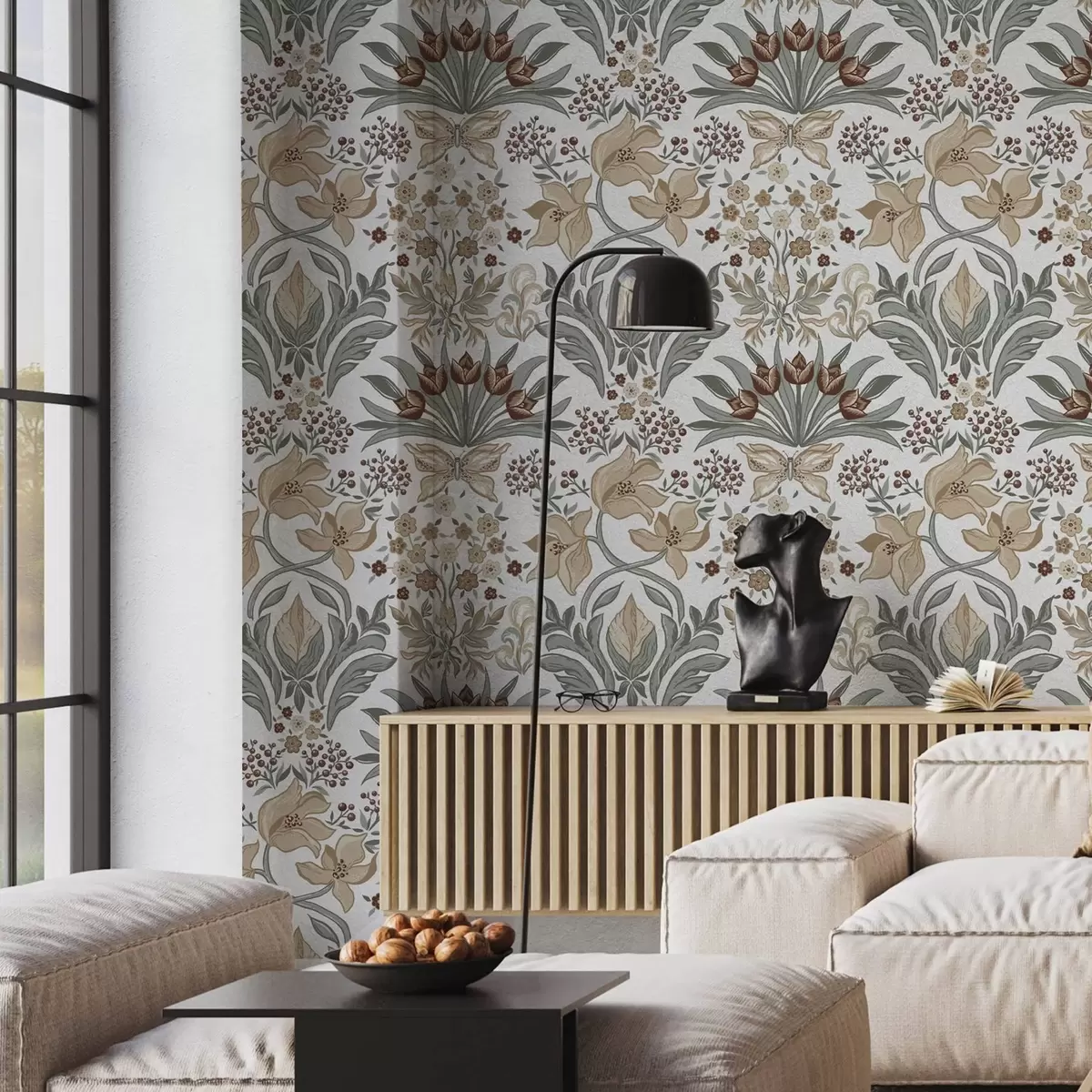 Тапет Декоративни лилии и пеперуда на бял фон Nr. a00500v1