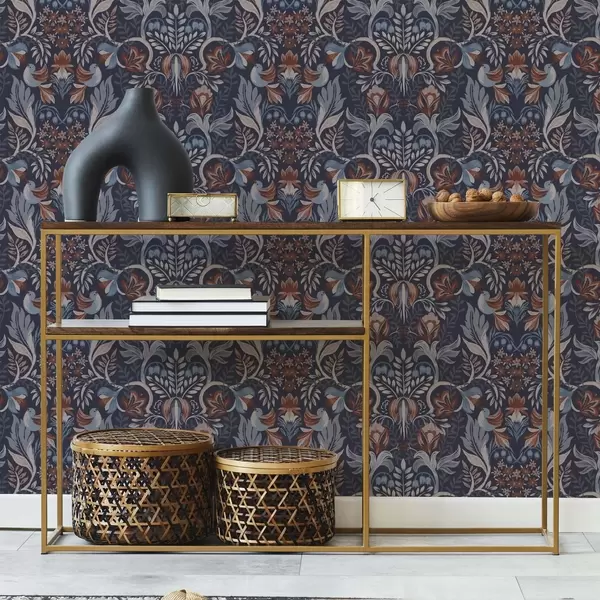Тапет Народни цветя и птици на тъмно син фон Nr. a00502
