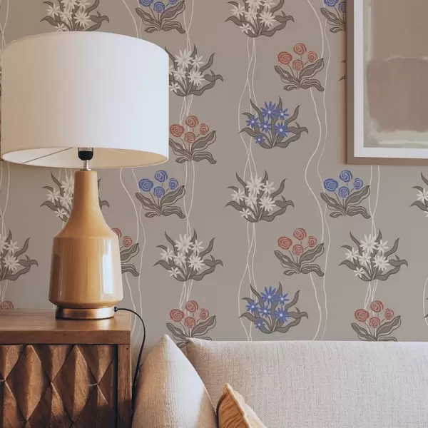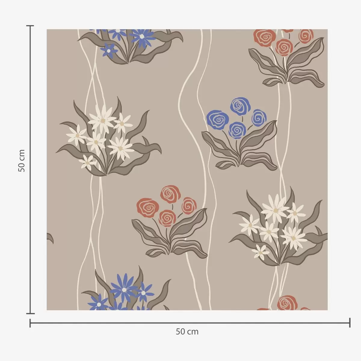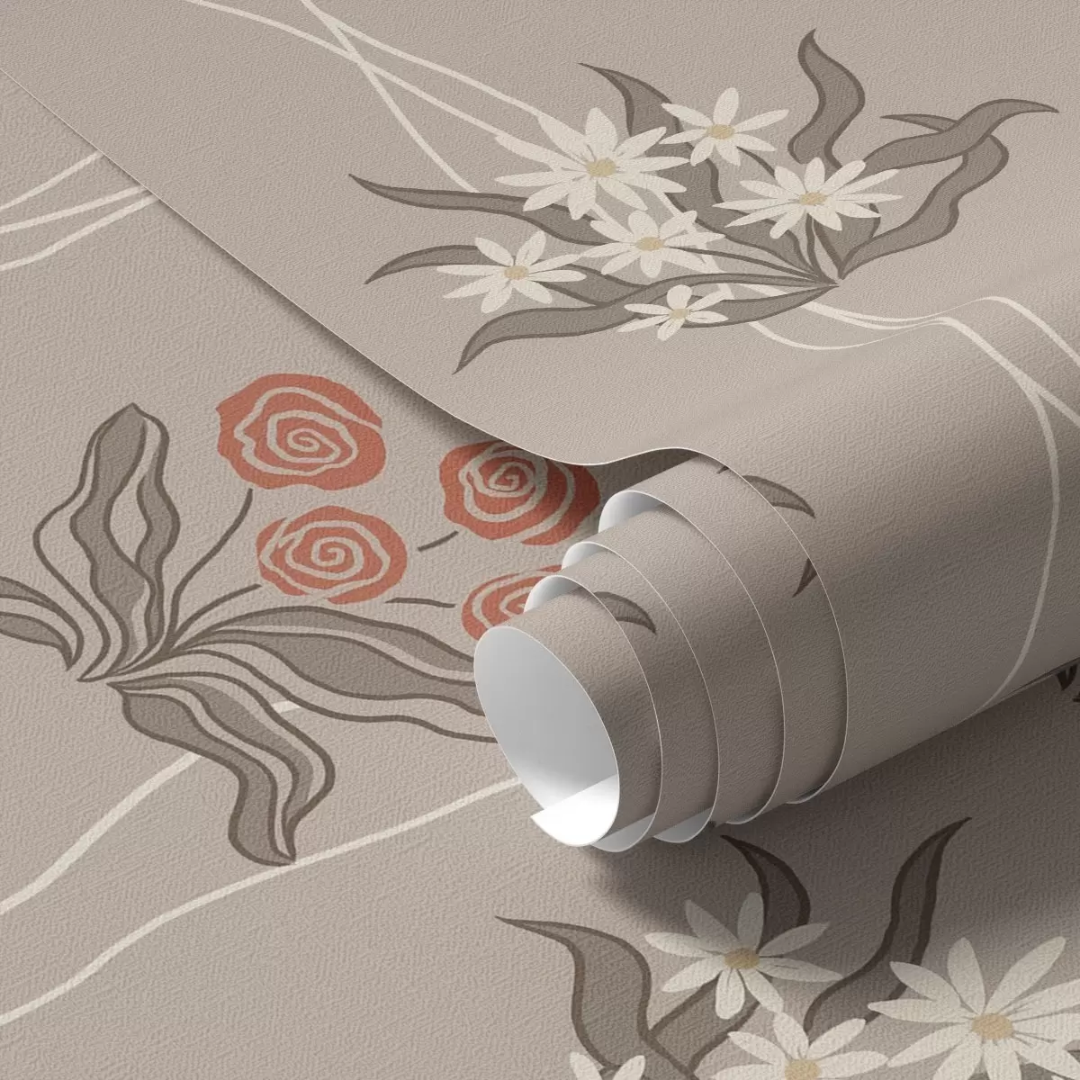 Тапет Ретро цветя с вълнообразни линии върху топло бежово Nr. a00503