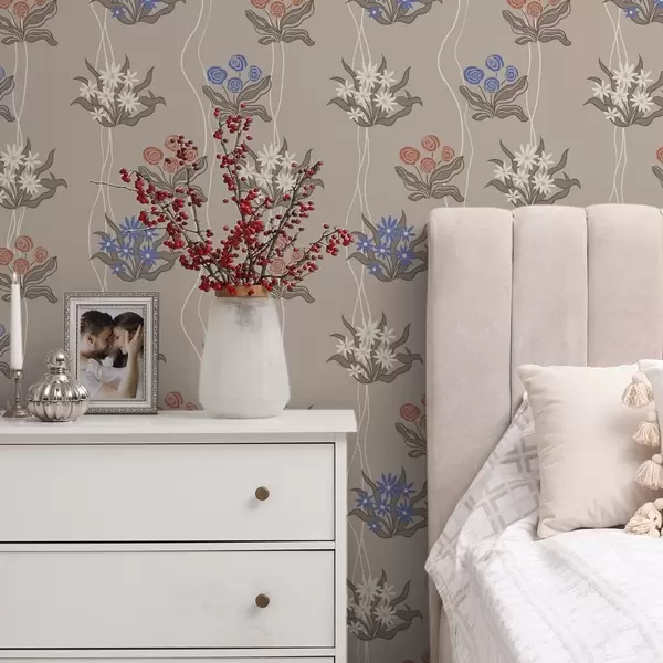 Тапет Ретро цветя с вълнообразни линии върху топло бежово Nr. a00503