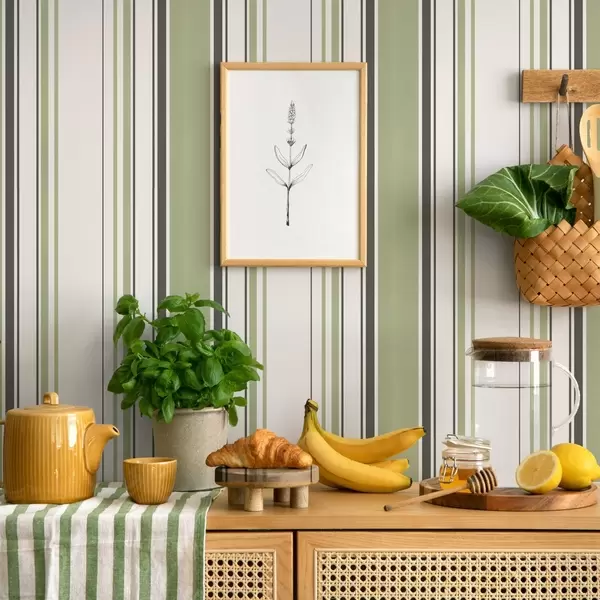 Тапет Бял фон със смесица от зелени и черни ивици Nr. a00520