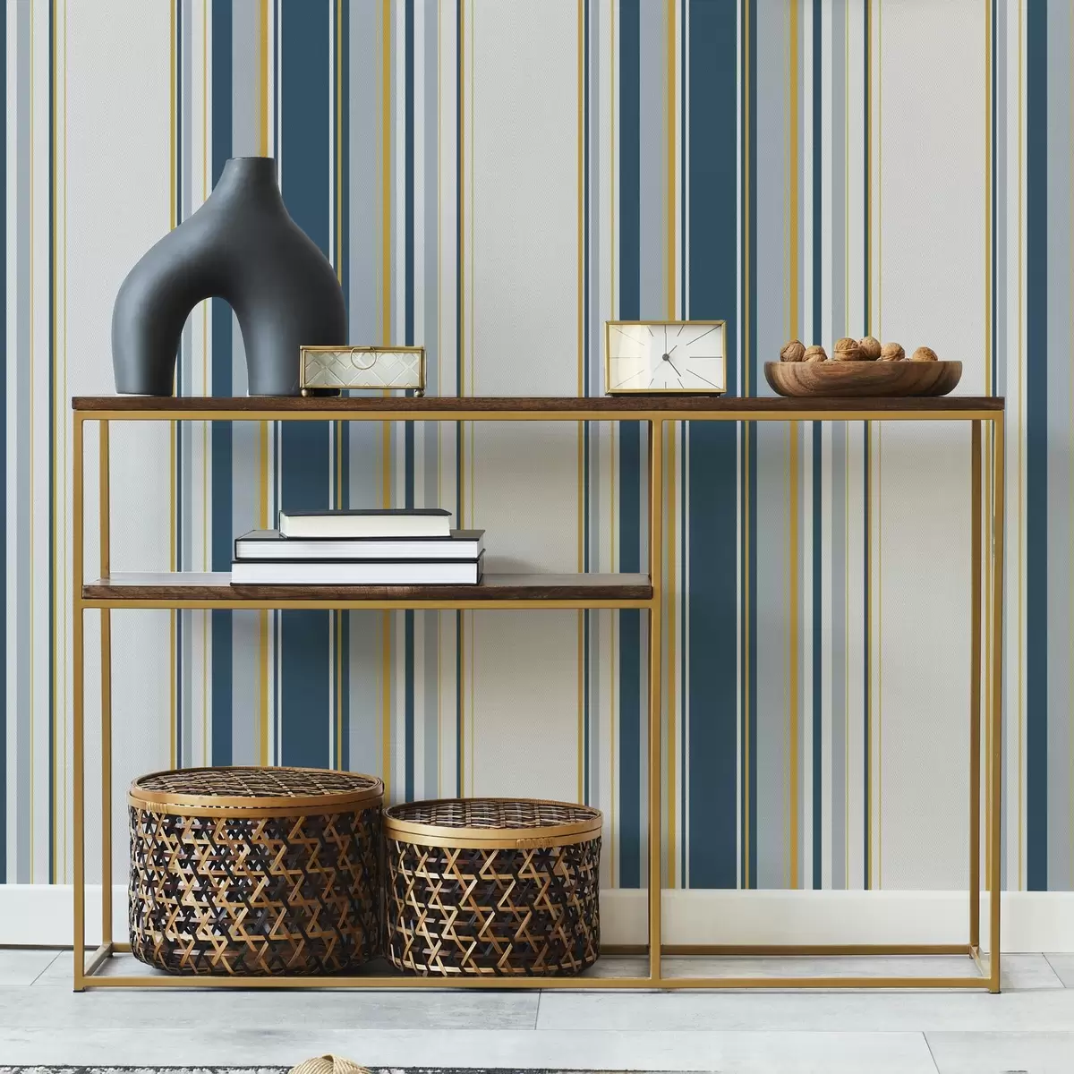 Тапет Плътна шарка от сини и жълти вертикални ивици Nr. a00524
